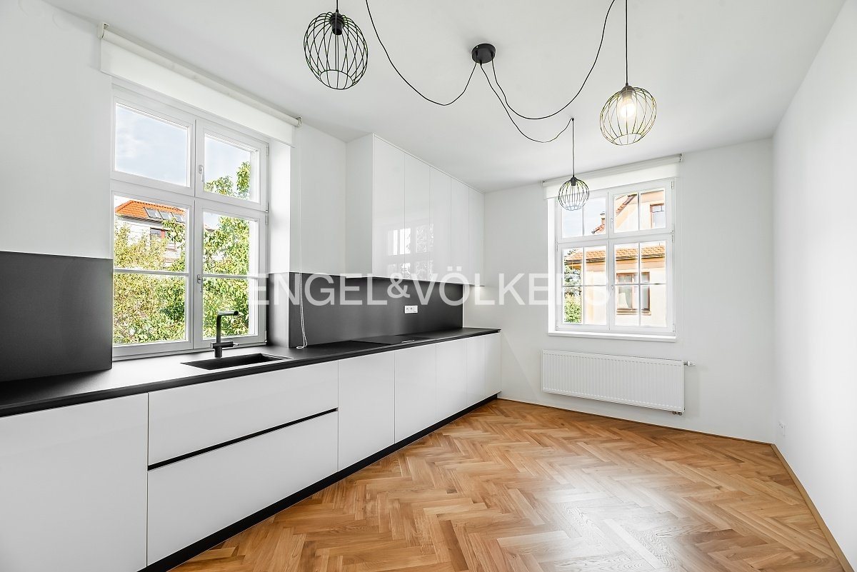 K okamžitému pronájmu Vám přínášíme byt 3+1 po kompletní rekonstrukci v nejvyšším standardu. Byt nabízí tři prostorné místnosti a samostatnou kuchyni v designovém provedení. Všechny pokoje jsou klimatizované. Prostorný obývací pokoj je vybaven nízkou skříňkou a televizí. Jedna ložnice je vybavena prostornou šatní skříní. Všechna okna jsou vybavena praktickými posuvnými roletami. Kuchyně je vybavena všemi spotřebiči. Krásná koupelna se sprchovým koutem, vanou a toaletou. Je zde i samostatná toaleta. V technické místnosti naleznete plynový kotel. Byt je částečně zařízený, po dohodě je možné dodat další vybavení. Je možné využívat společnou zahradu. Parkování je možné na pozemku za dálkově ovládanou branou pro 1-2 automobily. Domovní poplatky jsou vyčísleny na 6 100 Kč. Elektřina a plyn se převádí na nájemce.