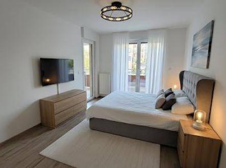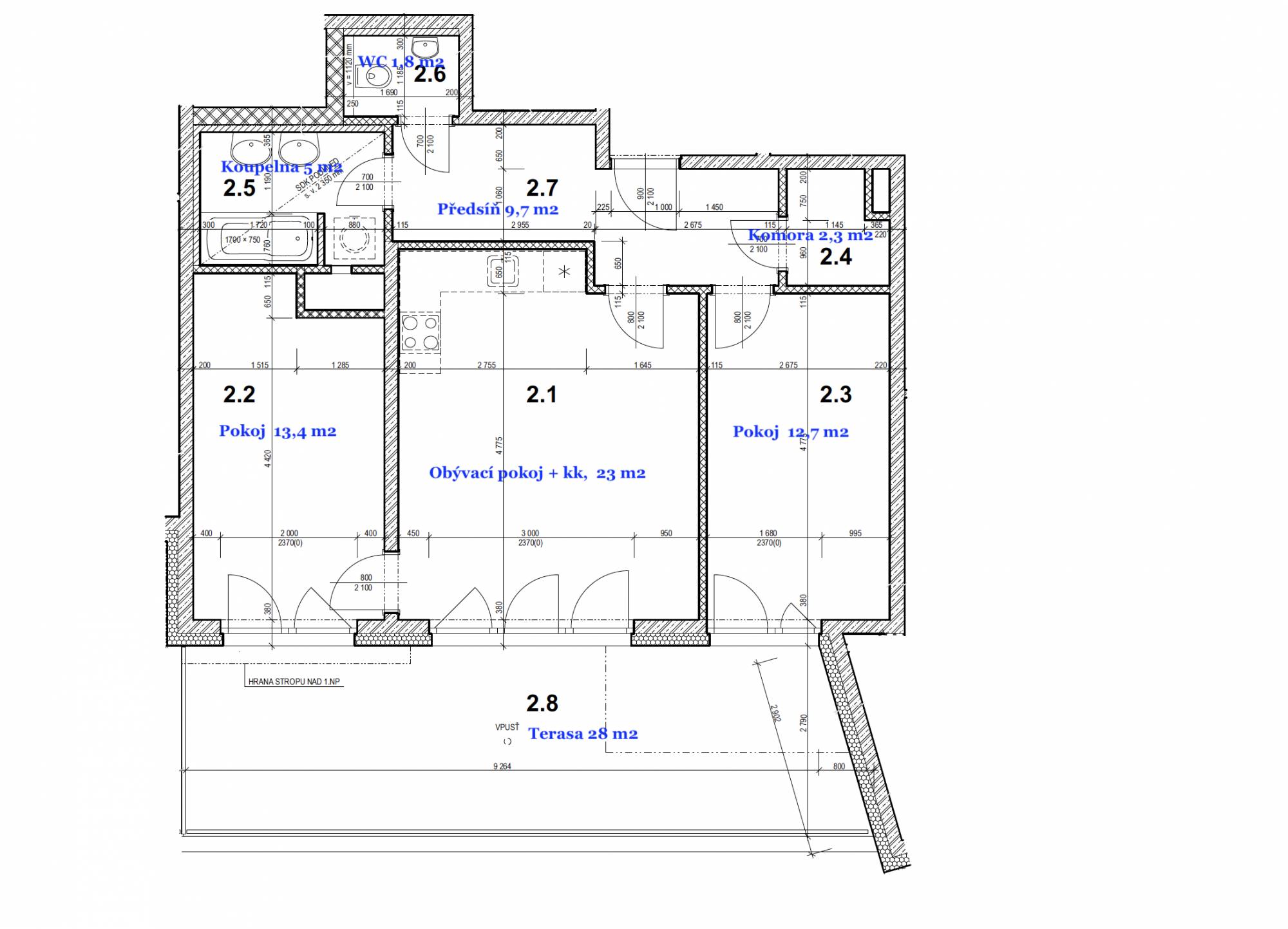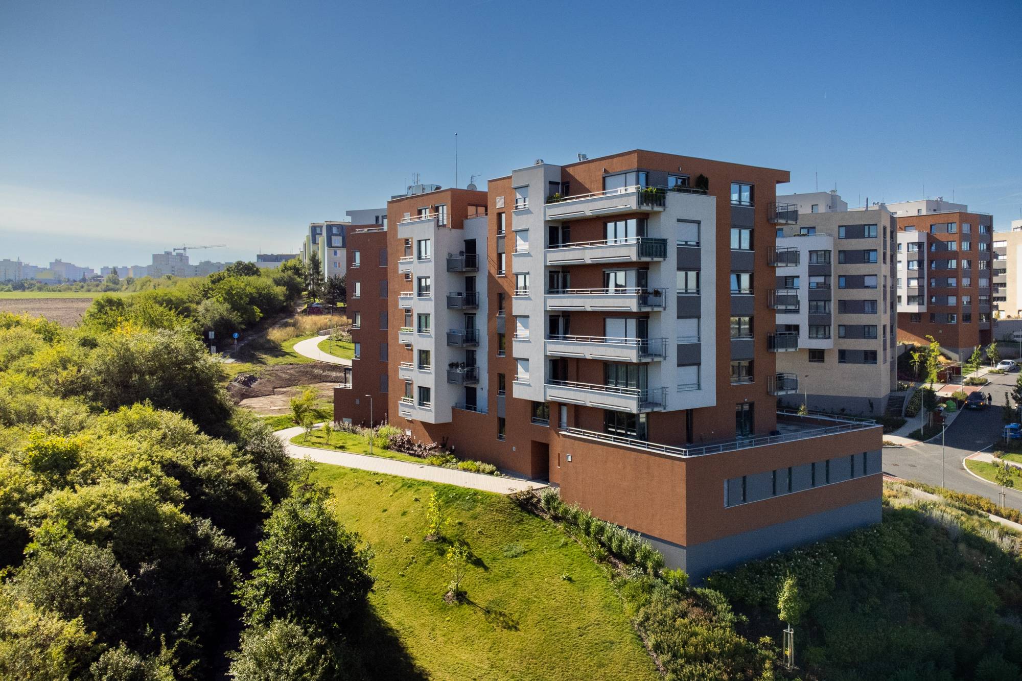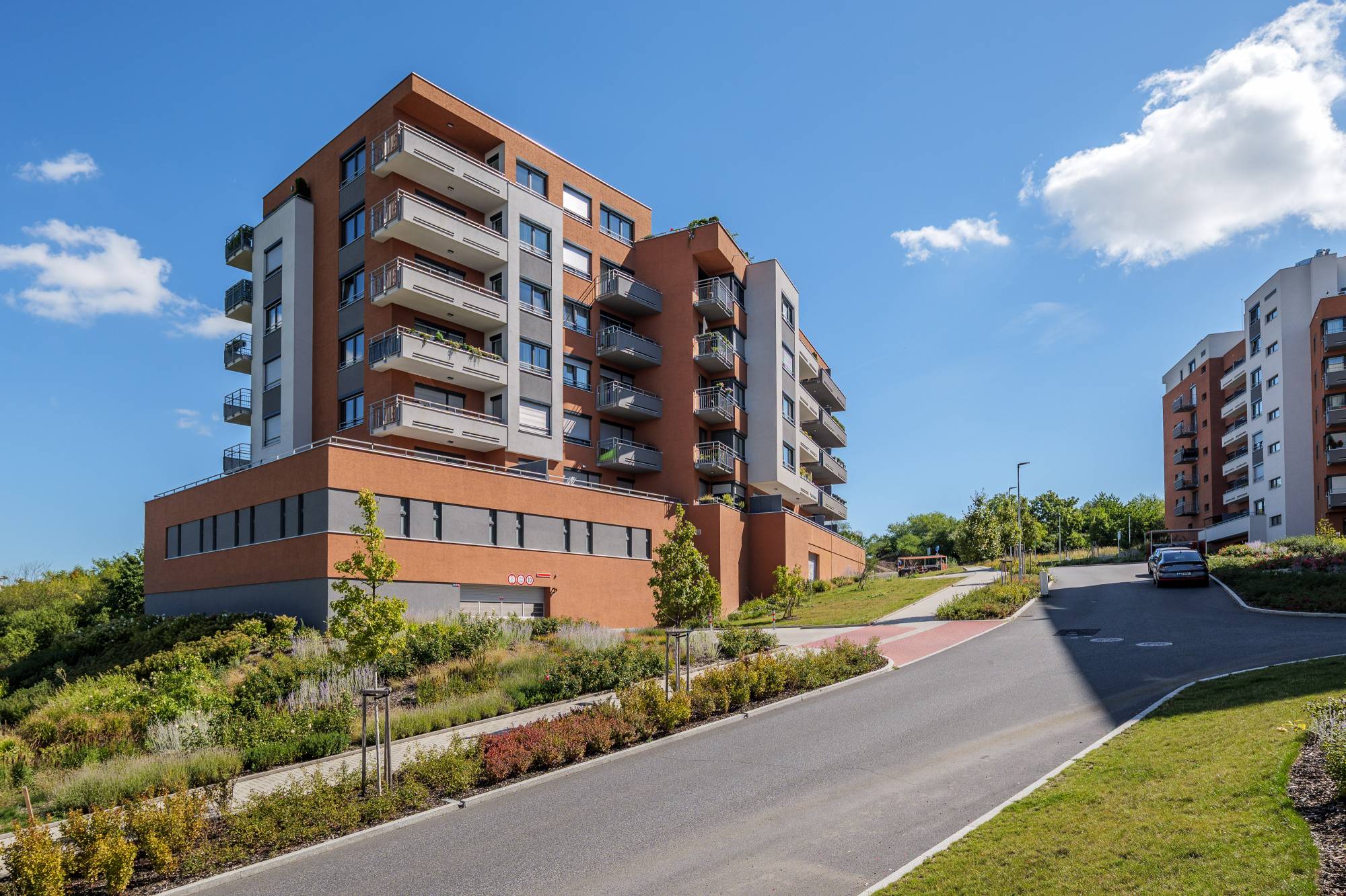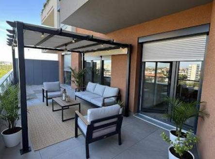 Byt 3+kk 74m2, terasa 28 m2, sklep+garážové stání