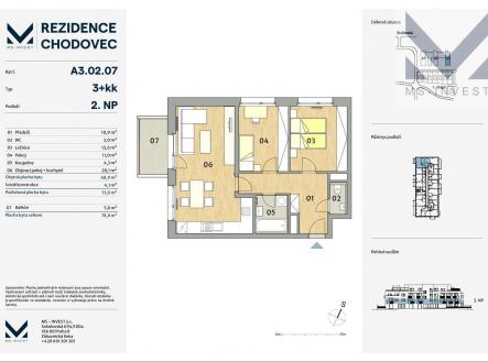 V rámci developerského projektu Rezidence Chodovec vznikne 90 bytových jednotek o dispozicích 1+kk až 4+kk a 8 samostatně stojících rodinných domů. Byty jsou vybaveny ve vysokém standardu, můžete si vybrat předzahrádku, balkon či střešní terasu. Výstavba byla zahájena v listopadu 2023, k nastěhování jaro 2026. K prodeji nabízíme byt 3+kk s balkonem se západní orientací. V ceně bytu je již zahrnut prostorný sklep a venkovní žaluzie. Pro více informací nás, prosím, kontaktujte.