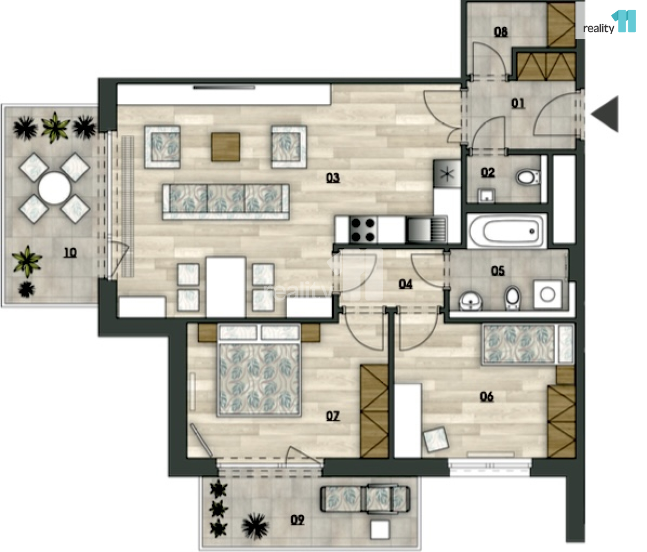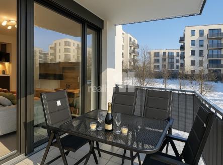 Byt 3+kk s dvěma balkóny, jedním parkovacím stáním v garáži a sklepem v Praze 9, Vysočany