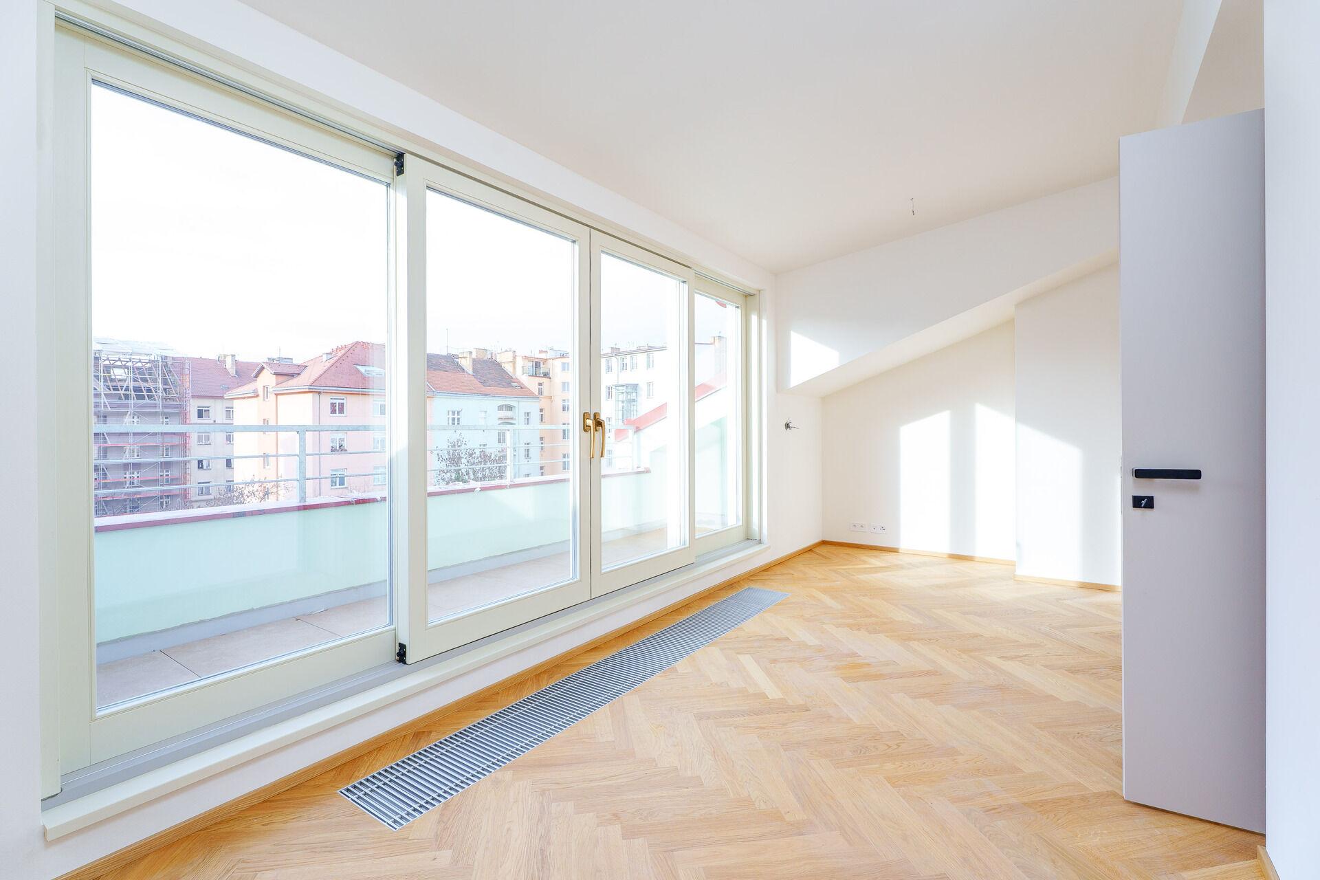 Novostavba podkrovního bytu o celkové ploše 81,8 m² v 6. nadzemním podlaží kompletně zrekonstruovaného cihlového domu s proskleným výtahem v ulici Bořivojova 825/31, Praha 3. K nastěhování březen 2026. Byt 3+kk 75,1 m2 s terasou o velikosti 6,7 m2 a úchvatným výhledem na kostel a žižkovskou věž. Obývací pokoj s velkými prosklenými dveřmi (HS portál) na terasu a kuchyňským koutem nabízí krásný prosluněný prostor, dvě ložnice se střešními okny orientované na východ do parku poskytnou příjemný odpočinek. V bytě je příjemná koupelna s prosklenou sprchou, samostatná toaleta a vstupní chodba s úložným prostorem. Byt je orientován na východ a západ do klidných parků. Žižkov je velmi ceněná pražská čtvrť, kde naleznete vše pro příjemný život. Parky, kavárny, školy, nákupy a vše, co je fajn pro pohodlný život. Společnost Stavba a design s.r.o. je zkušený stavitel půdních bytů a střešních nástaveb a realizoval stavbu při zachování původní architektury činžovního domu z počátku minulého století s prvky moderního designu ve vysokém standardu. Součástí rekonstrukce budovy jsou mimo jiné veškeré společné prostory, nový prosklený výtah, krásné schodiště. Každá bytová jednotka disponuje novými bezpečnostními a protipožárními dveřmi. K bytu je možno přikoupit 1 parkovací stání ve dvoře s dálkově ovládanými vjezdovými vraty. Informaci o ceně parkovacího stání vám rádi sdělíme dle podmínek prodeje. Kompletní rekonstrukce celého bytového domu zahrnuje nové rozvody elektřiny, vody a odpadů. Vytápění a ohřev teplé vody zajišťuje moderní úsporná plynová kotelna v domě. Cena: 15.895 000 Kč