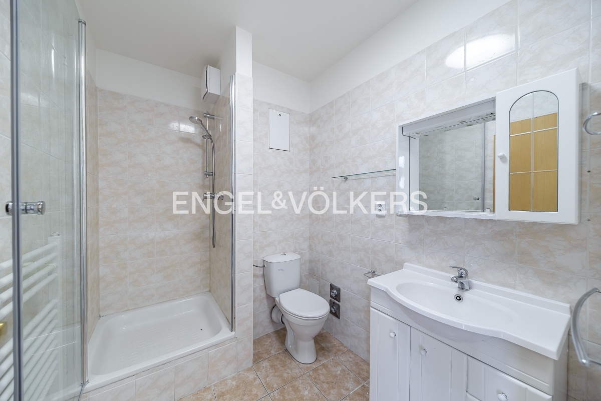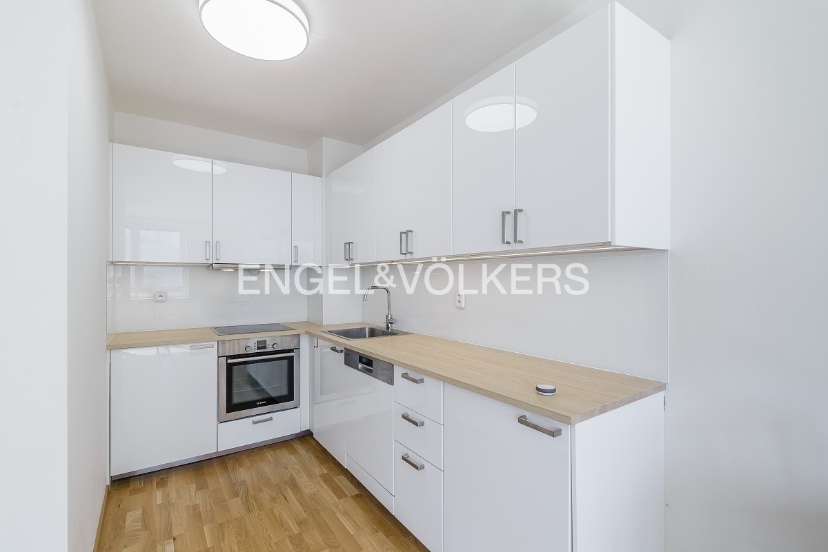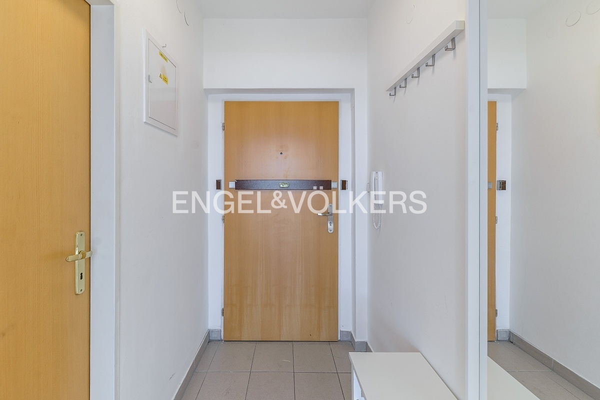 Krásný byt po částečné rekonstrukci s dispozicí 1+kk v 5. NP udržovaného bytového domu. Byt se skládá ze vstupní chodby, obytné místnosti s plně vybavenou kuchyní všemi spotřebiči značky Bosch, jídelním stolem, manželskou postelí a šatní skříní. Koupelna se sprchovým koutem je vybavena pračkou se sušičkou. Byt je orientován na východní stranu a je velmi světlý. V bytě jsou kompletně nové dřevěné podlahy. Poplatky činí 3 600 Kč včetně vytápění. Elektrická energie se hradí zvlášť. V budově je výtah, 24/7 recepce a možnost zajištění parkovacího místa v podzemních garážích za poplatek. Tramvajová zastávka se spojením do centra i stanice metra Želivského se nachází pár kroků od domu, v okolí je veškerá občanská vybavenost.