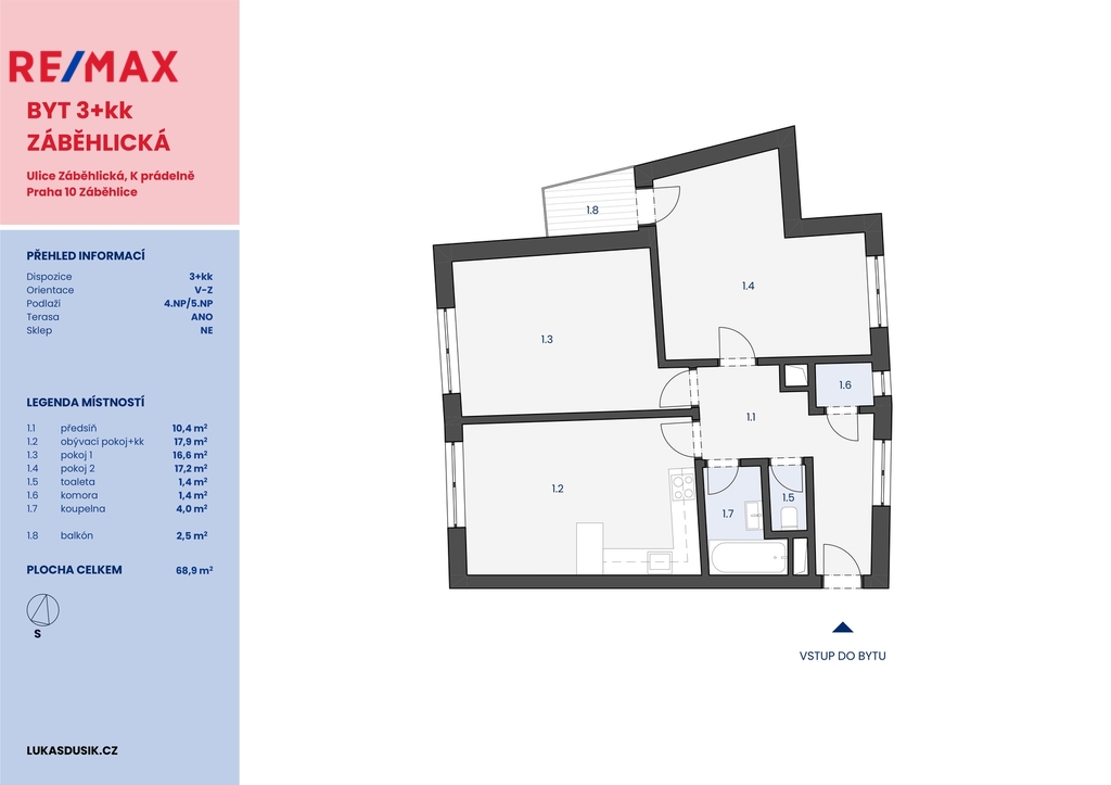 CENA VČETNĚ GARÁŽOVÉHO STÁNÍ 9 850 000 Kč (garážové stání je vždy součástí prodeje) cena za metr 132 000 Kč v cihlovém domě PENB B Bydlete tam, kam ostatní chodí na procházky! Nabízíme k prodeji příjemně světlý byt o praktické dispozici 3KK a celkové ploše 71,5 m² ve 4. patře cihlového domu s výtahem v žádané lokalitě Praha 10 Záběhlice, jen pár kroků od Hamerského rybníku. Byt se nachází v bezprostřední blízkosti přírody. Okolí Hamerského rybníku nabízí perfektní prostor pro relaxaci, sport i čas strávený s rodinou. Výhody bytu: - Komfortní parkování v podzemní vytápěné garáži – sedáte tak do vyhřátého vozu a v zimě nemusíte škrábat. - Přímo z garáže výtahem + soukromá chodba na patře sdílená pouze se sousedem – žádní cizí lidé před bytem. - Dům prošel modernizací, zateplením střechy a instalací nových plastových oken s trojskly. Díky tomu nabídne nízké provozní náklady a energetickou třídu B. - Cihlová konstrukce zajišťuje lepší tepelný komfort, akustické soukromí, delší životnost a vyšší kvalitu bydlení než panelové domy. - Komfortní dostupnost do centra – metro A (Strašnická/Skalka) nebo autobus linka C - Občanská vybavenost – základní školy, školky, poliklinika, obchodní centrum Vivo! Hostivař, sportovní areál HAMR v docházkové vzdálenosti Měsíční poplatky včetně garáže 6500 Kč (z toho fond oprav 1262 Kč) + elektřina Máte zájem o prohlídku nebo potřebujete více informací? Kontaktujte mě, rád Vám vše ukážu. A pokud zvažujete prodej své nemovitosti i vy, zavolejte mi – rád Vám pomohu s přípravou, prezentací a úspěšným prodejem. LUKÁŠ DUSÍK realitní makléř RE/MAX ALFA web LUKASDUSIK.CZ