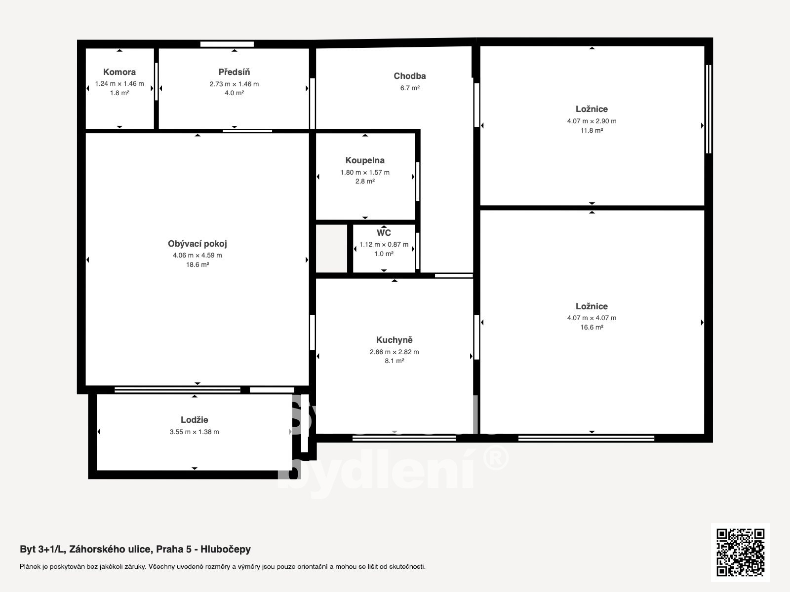 Doporučujeme světlý byt 3+1 s lodžií a sklepem, celkem cca 77,91 m2, Praha 5 - Hlubočepy, ul. Záhor