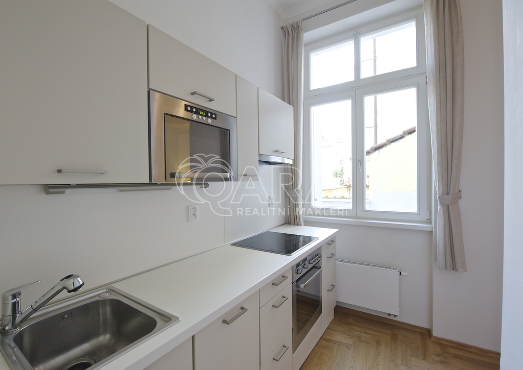 Hledáte zařízený byt na pronájem, kde se můžete rovnou zabydlet a přitom si užívat kvalitu, klid a noblesní adresu? Pak vás může oslovit tento vkusný byt 2+kk o ploše 50 m² v ulici Vratislavova, jen pár kroků od Vltavy a Vyšehradu. Byt se nachází v 1. nadzemním podlaží pečlivě zrekonstruovaného činžovního domu s výtahem. Rekonstrukce domu i interiéru byla provedena ve vysokém standardu s důrazem na kvalitní materiály, funkčnost a detail – s respektem k původní architektuře. Dispozice a vybavení Byt nabízí vstupní chodbu, obývací pokoj s kuchyňským koutem, ložnici a koupelnu. Kuchyňská linka značky Schüller je plně vybavena: elektrická varná deska, trouba, mikrovlnná trouba, digestoř, lednice, myčka nádobí a drtič odpadu. V koupelně je pračka i sušička, sanita Villeroy & Boch, baterie Hansgrohe a elegantní koupelnový nábytek. Standard bytu doplňuje: masivní dubové parkety španělské obklady a dlažby individuální plynové vytápění bezpečnostní vstupní dveře (třída 4) atypické dveře o výšce 210 cm videotelefon, SAT/TV a internet ve všech obytných místnostech požární hlásič Byt je kompletně zařízený kvalitním nábytkem a připravený k okamžitému užívání. Finanční podmínky Nájemné: 24 000 Kč / měsíc Poplatky: 1 800 Kč / měsíc + 600 Kč záloha na vodu Elektřina a plyn se převádí na nájemce Jistota: 2 měsíční nájmy Provize realitní kanceláře: 1 měsíční nájem bez poplatků Byt je k nastěhování od 1. 3. 2026. Lokalita Budova se nachází nedaleko Vltavy a Národní kulturní památky Vyšehrad. Ke cihlové bráně Vyšehradu je to přibližně 200 metrů. V okolí najdete kvalitní restaurace, kavárny i bary, včetně podniků na náplavce. Nechybí obchody, školky, školy, parky ani cyklostezka. Výborná dopravní dostupnost – tramvajové zastávky Albertov a Výtoň cca 200 metrů, Palackého náměstí s metrem Karlovo náměstí jednu zastávku. Zaujala vás kombinace elegance, praktičnosti a výjimečné adresy? Neváhejte nás kontaktovat – rádi pro vás zorganizujeme prohlídku.