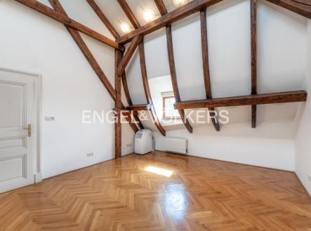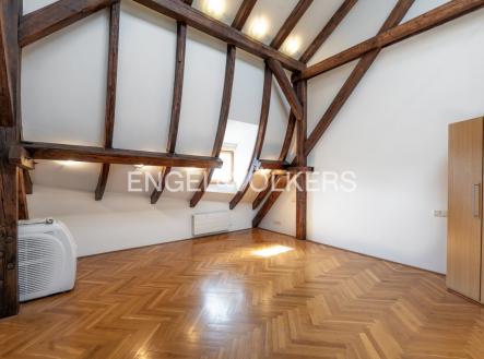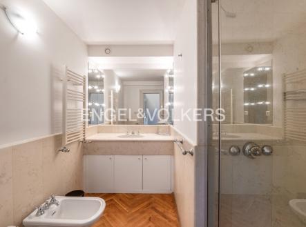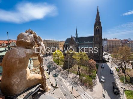 Nabízíme k dlouhodobému pronájmu stylový dvouúrovňový byt 5+1 s terasou o velikosti 24 m², která nabízí nádherný výhled na Pražský hrad, kostel sv. Ludmily a náměstí Míru s přilehlým parkem. Byt se nachází v 5. a 6. patře reprezentativní budovy po rekonstrukci, v prestižní rezidenční lokalitě pražských Vinohrad. Dispozice zahrnuje plně vybavenou otevřenou kuchyni, prostorný obývací pokoj s jídelní částí a přímým vstupem na terasu, hlavní ložnici s vlastní koupelnou v romantickém prostoru ve věži s původním dřevěným trámovím, další dvě ložnice s vlastními koupelnami a galeriemi, galerii/pracovnu nad obývacím pokojem, toaletu pro hosty, komoru a samostatnou prádelnu. Byt vyniká vysokými stropy, velkoformátovými okny, parketami, kamennými podlahami a mramorovými koupelnami. Kuchyňská linka je vybavena kamennými pracovními deskami. K dalšímu vybavení patří vysokorychlostní internet, alarm a možnost připojení na bezpečnostní systém. Dům disponuje výtahem s přímým vstupem z garáží. Parkovací stání v garáži je k dispozici za příplatek 200 EUR měsíčně. Vyhledávaná lokalita Vinohrad nabízí dokonalé spojení klidného bydlení a kompletní občanské vybavenosti. V okolí se nachází množství obchodů, restaurací, kaváren i škol. Výborná dopravní dostupnost – tramvajová zastávka a stanice metra A Náměstí Míru jsou vzdáleny jen 2 minuty chůze. Zájemce je srozuměn s provizí realitní kanceláře 1 měsíčního nájmu + DPH.