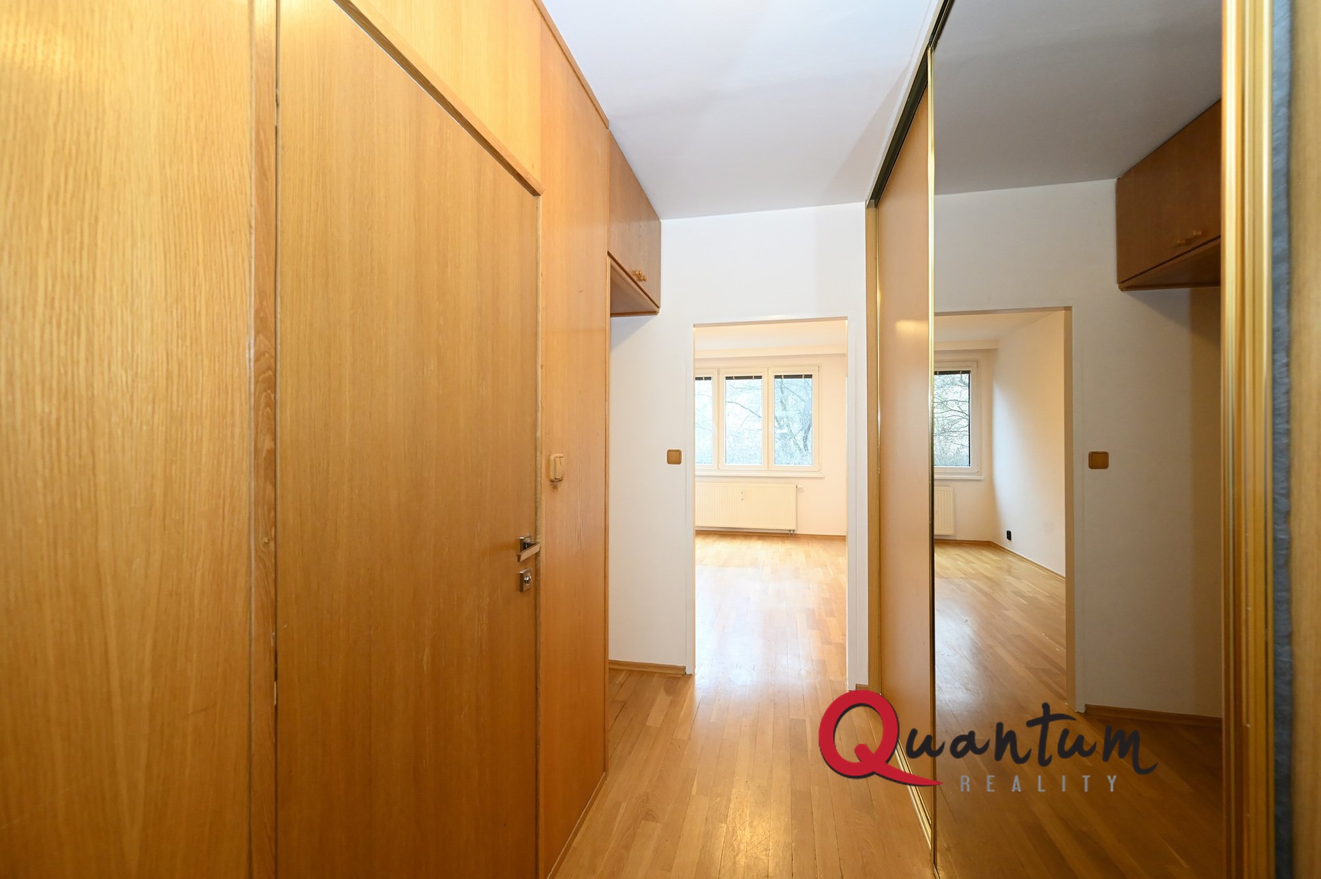 Exkluzivně nabízíme k dlouhodobému pronájmu velmi pěkný byt 2+kk o celkové ploše cca 46 m2, který se nachází v 1. patře atypického panelového domu z roku 1997 s výtahem, v žádané a výborně dostupné lokalitě. Byt je ve výborném stavu a je nabízen nezařízený. Sestává ze 2 pokojů (orientovaných na jih), kuchyňského koutu s kuchyňskou linkou s vestavěnými spotřebiči - sklokeramická varná deska, el. trouba, lednice s mrazákem a pračka. V koupelně (zděné jádro) je vana společně s WC. V chodbě je dostatek úložných prostor - velká vestavěná skříň a úložný prostor nad dveřmi. Okna jsou plastová se žaluziemi, podlahy dřevěné a dlažba, vytápění ústřední. K bytu náleží i sklep v suterénu domu. V případě zájmu je možné si pronájmu garážového stání v domě za 2.500 Kč/ měs. Jedná se o velice příjemnou lokalitu s dostatkem zeleně, v těsné blízkosti Prokopského a Dalejského údolí. Veškerá občanská vybavenost v místě – OC Velká Ohrada, Albert, Lidl, restaurace, pošta, lékárna, poliklinika apod. Výborná dostupnost – zastávka autobusu 200 m od domu, busem 5 min. k metru Luka nebo Nové Butovice, případně chůzí cca 10 min. k metru Lužiny. Měsíční poplatky 3.800 Kč jsou uvedeny pro 2 osoby + převod elektřiny na nájemce, internet si zřizuje nájemce sám. Kauce ve výši 35.000 Kč. Byt je určen ideálně pro 2 osoby bez domácích mazlíčků. Ihned k nastěhování.