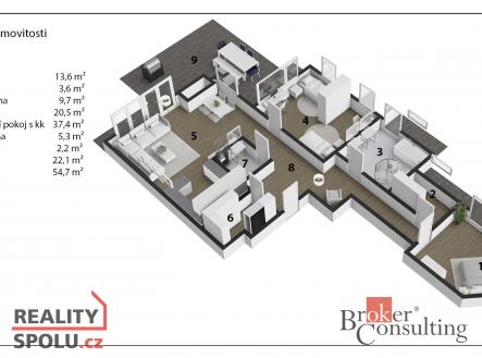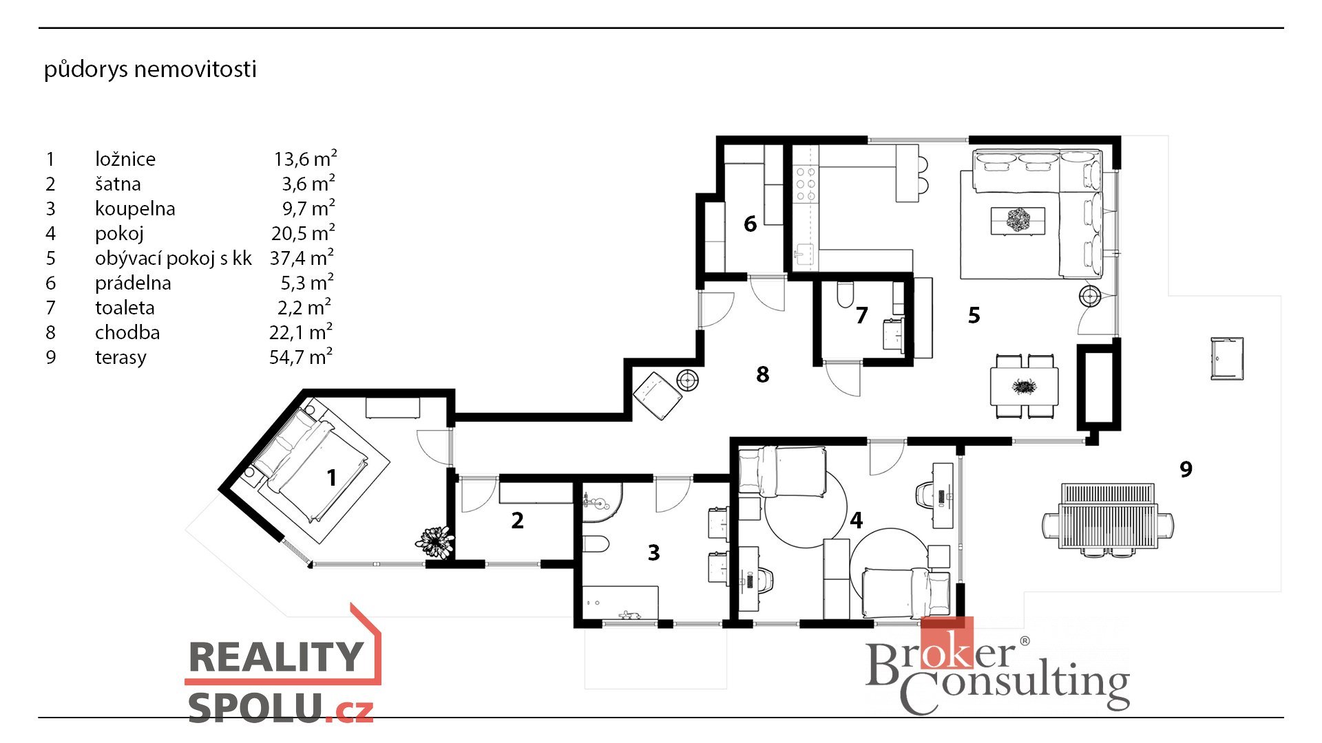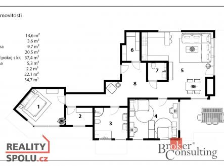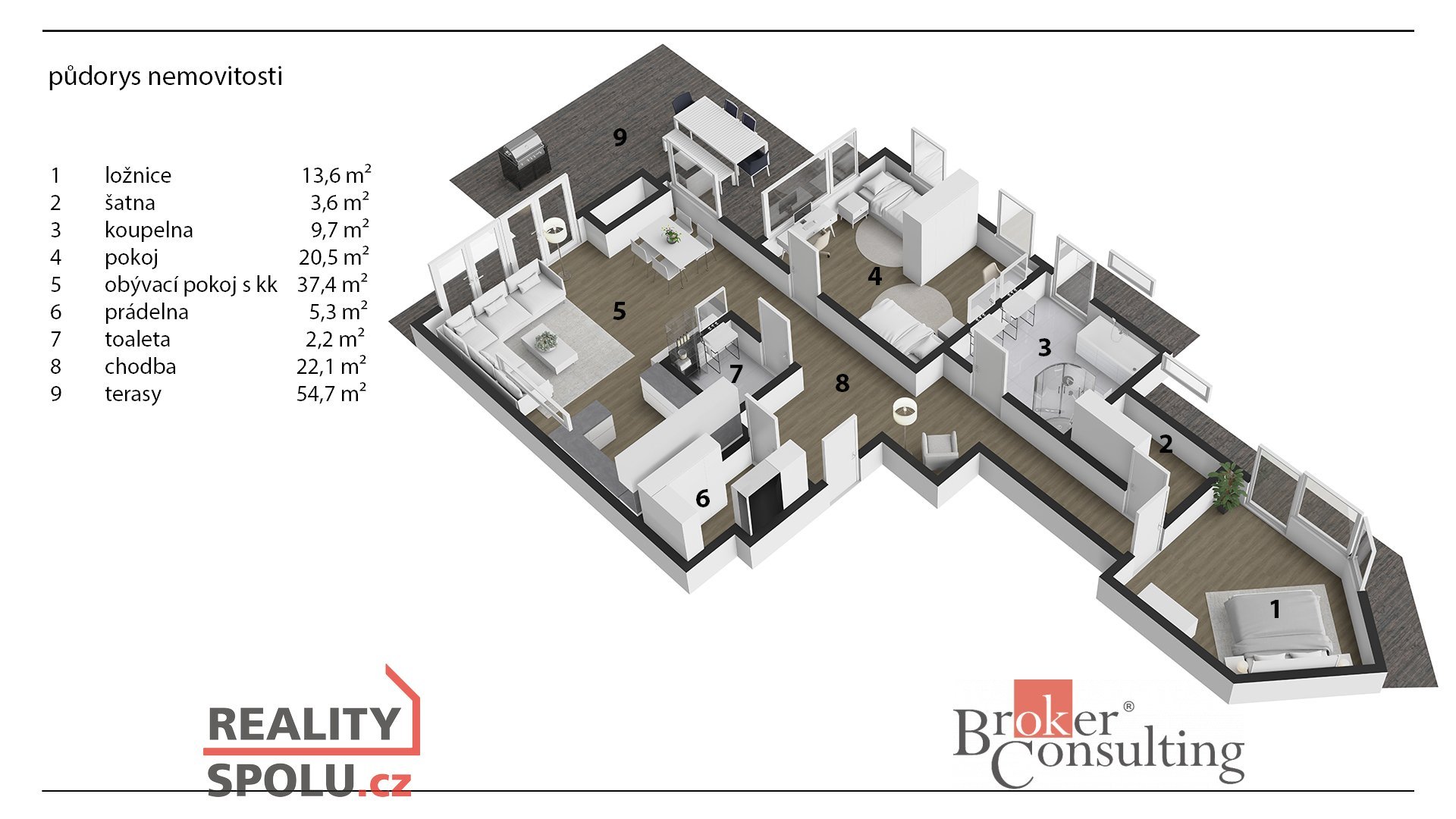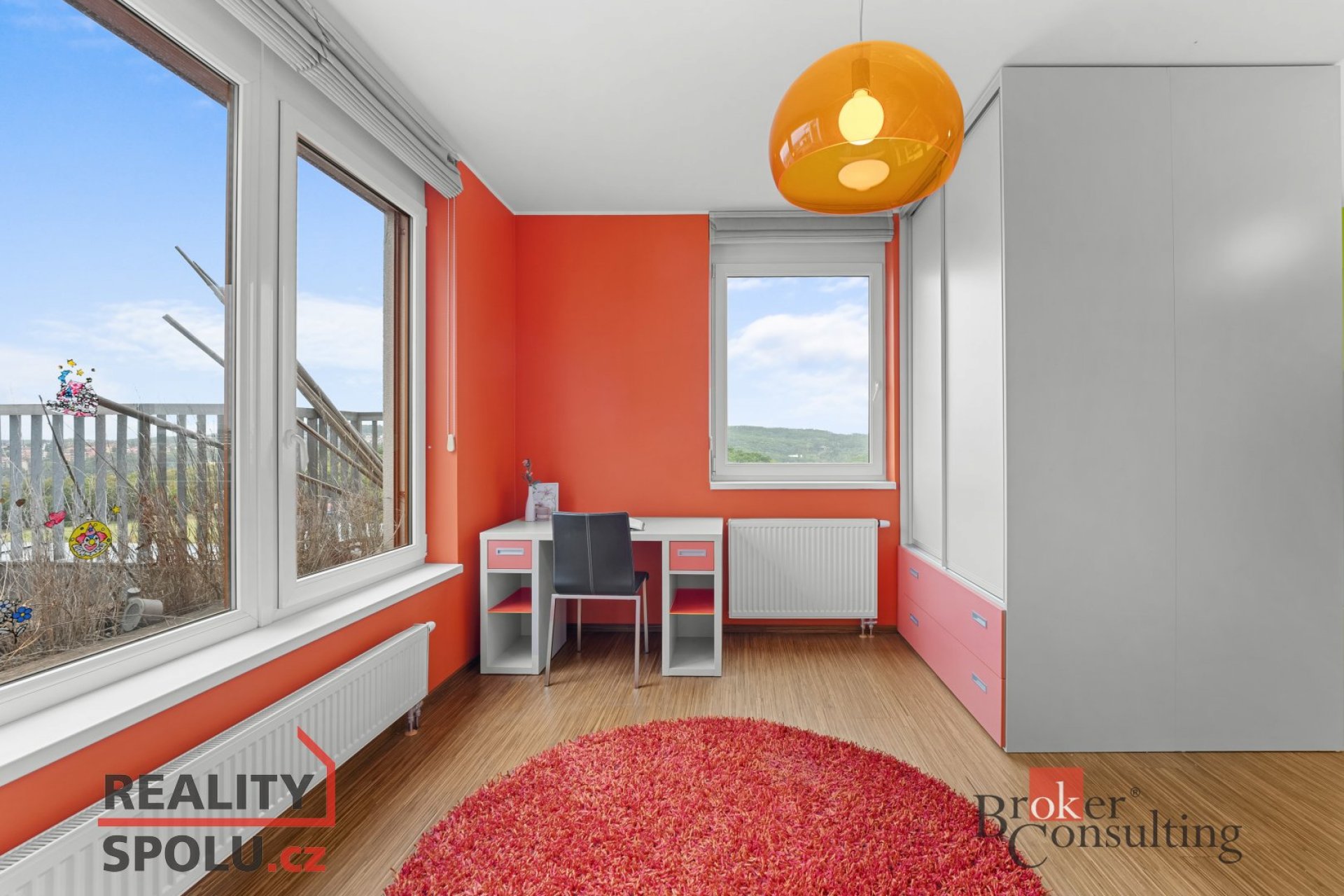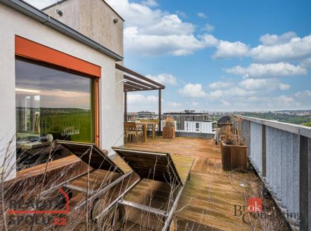 Nabízíme k prodeji exkluzivní byt 3+kk o celkové ploše 114,4 m², situovaný v posledním patře moderní rezidence na vyhledávané adrese Na Císařce – Praha 5. Součástí bytu je terasa 55 m² vybavená příjemným posezením pro rodinu a přátelé, sprchou pro osvěžení a závlahovým systémem, která nabízí dechberoucí panoramatický výhled na Prahu a okolní zeleň, který vás doslova uchvátí. Interiér bytu byl navržen s důrazem na eleganci, kvalitu a funkčnost. Využity byly prvotřídní materiály na míru a nadstandardní vybavení – například kuchyňská linka se spotřebiči značky Miele. Dispozice nabízí: • prostorný obývací pokoj s kuchyní (37,4 m2) a vstupem na terasu • 2 ložnice (20,5 m2 a 13,6 m2) • 1 koupelnu s toaletou (9,7 m2) a 1 toaletu pro hosty (2,2 m2) • šatnu (3,6 m2), samostatnou prádelnu (5,3 m2) • chodbu (22,1 m2) • možnost úpravy na 4+kk Byt je plně klimatizovaný, orientovaný do klidné části, a díky umístění v nejvyšším podlaží poskytuje naprosté soukromí i dostatek světla po celý den. Pro ještě větší pohodlí a soukromí jsou v celém bytě instalovány automatické žaluzie s dálkovým ovládáním. K bytu náleží: • komora 12 m² • dvě krytá parkovací stání v garáži • výtah a bezbariérový přístup Lokalita: Rezidence se nachází v atraktivní lokalitě Prahy 5 – Na Císařce, s recepcí a ostrahou, kamerovým systémem a privátním dětským hřištěm, obklopené zelení a s výbornou dostupností do centra města. V blízkosti jsou parky Ladronka a Košíře-Motol, nemocnice Homolka i Motol, soukromá školka, základní škola, sportovní areály a veškerá občanská vybavenost. Do centra se pohodlně dostanete autem i MHD – Smíchov a Anděl jsou vzdáleny jen několik minut jízdy. Tato nemovitost představuje ideální kombinaci klidného bydlení v zeleni s dostupností velkoměsta a komfortem na nejvyšší úrovni. Pro více informací a domluvení prohlídky mě neváhejte kontaktovat.