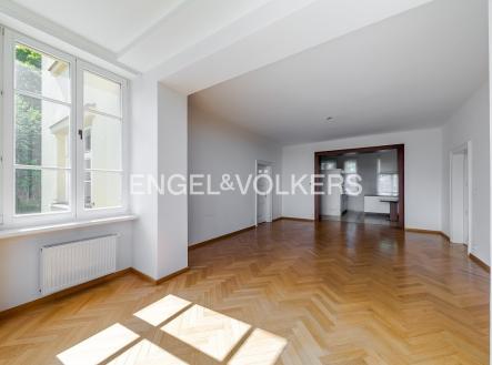 K dlouhodobému pronájmu nabízíme plně zrekonstruovaný byt s dispozicí 4+kk s terasou, který se nachází v 2. podlaží historické vily po kompletní rekonstrukci. Vila se společnou zahradou, saunou a vířivkou je situována v klidné rezidenční čtvrti v těsné blízkosti parku Klamovka. Dispozice bytu zahrnuje prostorný obývací pokoj s arkýřovými okny, plně vybavenou kuchyňskou linku se spotřebiči Miele (myčka, trouba, mikrovlnná trouba, varná deska, lednice s mrazákem), tři samostatné ložnice, z nichž jedna má přístup na vlastní terasu s výhledem do zeleně. Dále jsou k dispozici dvě koupelny – jedna s vanou, druhá se sprchovým koutem a toaletou. K bytu náleží prostorný sklep, parkování možné na pozemku. Nájemcům je k dispozici společný zahradní domek s plně vybavenou kuchyní a saunou, ideální pro grilování a společenské akce. Střešní terasa nabízí k užívání také vířivku s výhledem na Prahu. Standard bytu podtrhují zachované původní prvky, dřevěné podlahy, podlahové vytápění v koupelnách, alarm, videotelefon, kamerový systém a automatická závlaha zahrady. Měsíční poplatky činí 8 700 Kč, z toho 2 200 Kč připadá na užívání zahradního domku a střešní terasy s vířivkou. Spotřeba plynu a elektřiny v bytě se převádí na nájemce. Možnost pronájmu druhého parkovacího stání za 2 000 Kč/měsíc. Lokalita nabízí klidné rezidenční bydlení s vynikající dostupností do centra Prahy, k nákupnímu centru Nový Smíchov i na stanici metra Anděl. V docházkové vzdálenosti je také Francouzské lyceum, sportovní areál Strahov nebo tenisové kurty. Byt se pronajímá nezařízený. K dispozici ihned. V domě panuje vyjímečně dobrá rodinná atmosféra mezi současnými nájemci. Zájemce je srozuměn s provizí realitní kanceláři ve výši jednoho měsíčního nájmu + DPH.