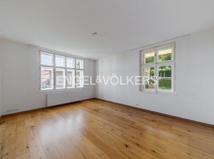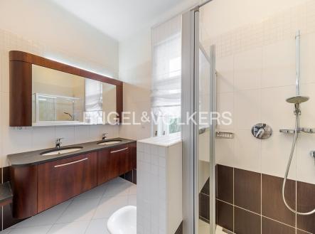 K dlouhodobému pronájmu nabízíme plně zrekonstruovaný byt s dispozicí 4+kk s terasou, který se nachází v 2. podlaží historické vily po kompletní rekonstrukci. Vila se společnou zahradou, saunou a vířivkou je situována v klidné rezidenční čtvrti v těsné blízkosti parku Klamovka. Dispozice bytu zahrnuje prostorný obývací pokoj s arkýřovými okny, plně vybavenou kuchyňskou linku se spotřebiči Miele (myčka, trouba, mikrovlnná trouba, varná deska, lednice s mrazákem), tři samostatné ložnice, z nichž jedna má přístup na vlastní terasu s výhledem do zeleně. Dále jsou k dispozici dvě koupelny – jedna s vanou, druhá se sprchovým koutem a toaletou. K bytu náleží prostorný sklep, parkování možné na pozemku. Nájemcům je k dispozici společný zahradní domek s plně vybavenou kuchyní a saunou, ideální pro grilování a společenské akce. Střešní terasa nabízí k užívání také vířivku s výhledem na Prahu. Standard bytu podtrhují zachované původní prvky, dřevěné podlahy, podlahové vytápění v koupelnách, alarm, videotelefon, kamerový systém a automatická závlaha zahrady. Měsíční poplatky činí 8 700 Kč, z toho 2 200 Kč připadá na užívání zahradního domku a střešní terasy s vířivkou. Spotřeba plynu a elektřiny v bytě se převádí na nájemce. Možnost pronájmu druhého parkovacího stání za 2 000 Kč/měsíc. Lokalita nabízí klidné rezidenční bydlení s vynikající dostupností do centra Prahy, k nákupnímu centru Nový Smíchov i na stanici metra Anděl. V docházkové vzdálenosti je také Francouzské lyceum, sportovní areál Strahov nebo tenisové kurty. Byt se pronajímá nezařízený. K dispozici ihned. V domě panuje vyjímečně dobrá rodinná atmosféra mezi současnými nájemci. Zájemce je srozuměn s provizí realitní kanceláři ve výši jednoho měsíčního nájmu + DPH.