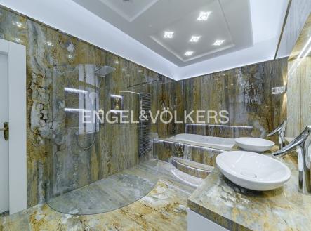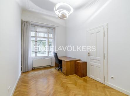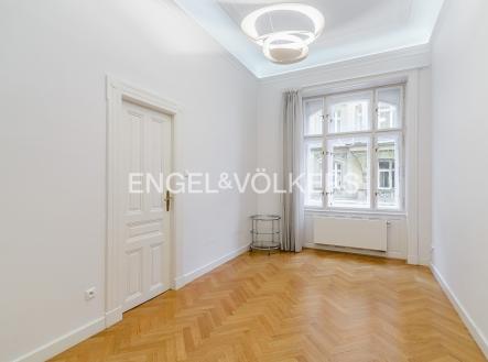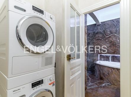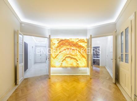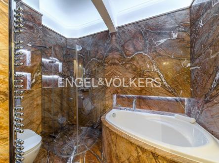 K okamžitému pronájmu nabízíme velkorysý světlý byt s výhledem na kostel sv. Ducha s dispozičním řešením 4+1 v ulici V Kolkovně - prestižní lokalitě jen pár kroků od Staroměstského náměstí. Byt se nachází ve druhém nadzemním podlaží zrekonstruovaného činžovního domu s výtahem. Prošel kompletní nákladnou rekonstrukcí, při které se dbalo na zachování původních architektonických prvků jako jsou vysoké stropy, štuky, kazetové dveře a špaletová okna. Dispozice bytu nabízí prostornou vstupní halu, které dominuje podsvícená onyxová deska, světlý obývací pokoj s arkýřem a krbem, nadstandardně vybavenou kuchyň s množstvím úložného prostoru a spotřebiči značky Miele a De Dietrich se vstupem na balkón. Dále jsou součástí bytu tři neprůchozí světlé ložnice. Hlavní ložnice se vstupem na balkón je doplněna mramorovou koupelnou se sprchovým koutem a masážní vanou. Byt disponuje další koupelnou se sprchovým koutem, vanou a ještě jednou samostatnou toaletou pro hosty. Výhodou je šatna se vstupem z haly. Součástí vybavení je pračka, sušička, klimatizace, bezpečnostní dveře, alarm a kamerový systém v společných prostorech domu. Byt se pronajímá nezařízený. Poplatky za služby činí 9 500 Kč měsíčně, elektřina a plyn se převádějí na nájemce. Kauce je stanovena ve výši dvou měsíčních nájmů. Provize realitní kanceláři činí jeden měsíční nájem + DPH.