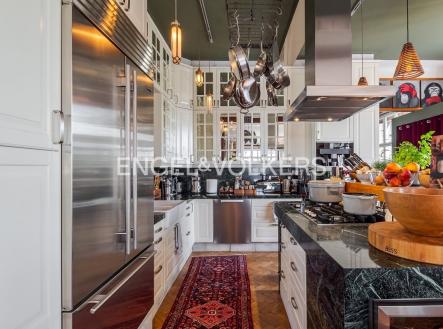 K pronájmu nabízíme exkluzivní, vysoce reprezentativní mezonetový penthouse o výjimečné rozloze téměř 600 m², umístěný v posledních dvou patrech prestižní rezidence. Tento výjimečný byt nabízí 4 ložnice, 3 koupelny, prostorný obývací pokoj, pracovnu, knihovnu, jídelnu s plně vybavenou moderní kuchyní a další kuchyň v horním patře. Nechybí ani relaxační místnost s barem, domácím kinem a třetí kuchyní. Dominantou bytu je rozsáhlá střešní terasa o velikosti 200 m² s dechberoucími výhledy na Pražský hrad, Vltavu, Vyšehrad i Baziliku sv. Petra a Pavla. Terasa je vybavena vířivkou pro 5 osob, grilem, posezením, podlahou z exotického dřeva a bohatou zelení zajišťující naprosté soukromí. V jedné z koupelen se nachází sauna a parní lázeň. Vysoký standard provedení zahrnuje mramorové koupelny, masivní dřevěné podlahy, kvalitní koberce a designový nábytek z exotických i evropských zdrojů. Všechny ložnice mají prostorné vestavěné skříně. Tento výjimečný byt je ideální volbou pro náročné nájemce hledající naprosté soukromí, komfort a neopakovatelné výhledy v centru Prahy. Kauce odpovídá třem měsíčním nájmům a provize realitní kanceláři je ve výši jednoho měsíčního nájmu + DPH.