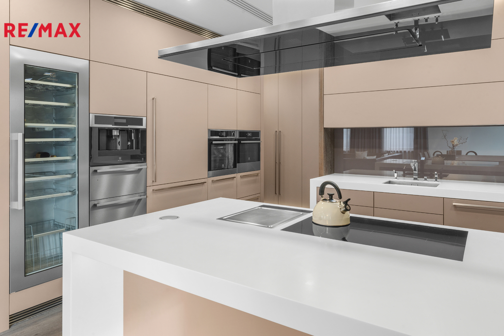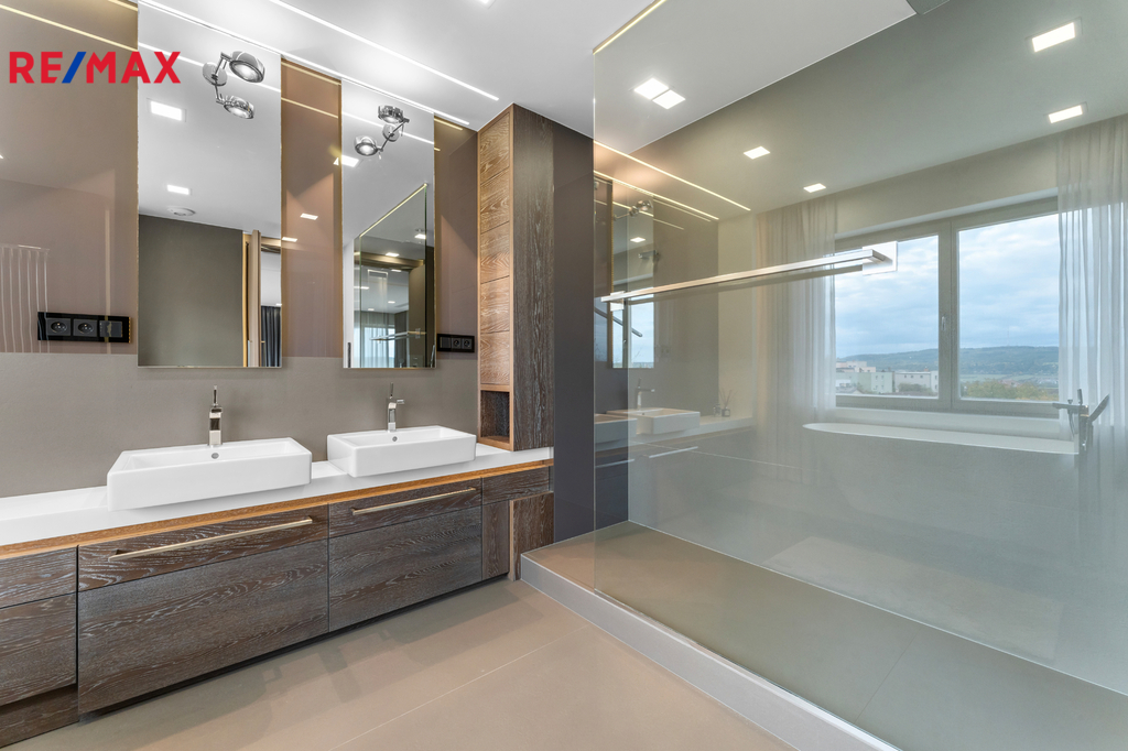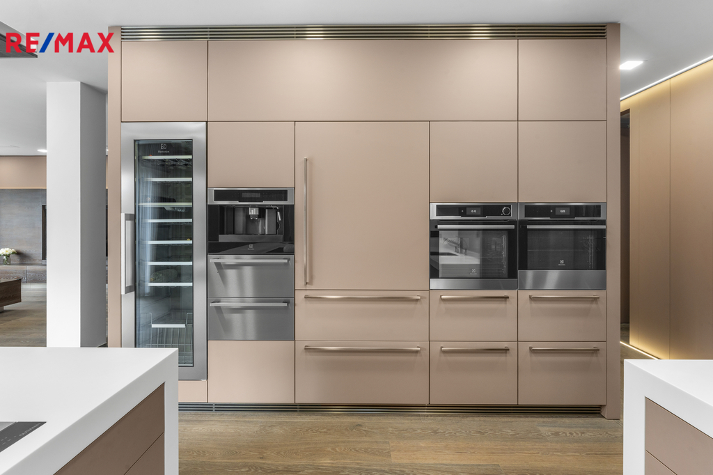 Hledáte jedinečné bydlení? Luxusní a zároveň funkční domov? Nabízíme úžasný penthouse o dispozici 5+kk se třemi parkovacími místy, střešní terasou s fitness, bazénem, vířivkou, letní kuchyní a skvělými výhledy do okolí v projektu Terasy Radotín. BYT Samotný byt zabírá celé 2. nadzemní podlaží (dům je ve svahu a má ještě 3 podzemní obytná podlaží) domu z roku 2014. Byl kompletně přebudován ze dvou původních jednotek tak, aby byl luxusní, ale zároveň pohodlný a funkční. Byt využívá vše, co nabídl původní projekt – vysoké stropy, výhled do údolí Berounky přes velkoformátová okna, kvalitní technologii vytápění či soukromí menšího projektu, ovšem celek posouvá pojetím na novou úroveň. Výměra samotného bytu činí více než 260 m2. Dispozičně je řešen jako 5+kk. Všude najdeme vestavěný nábytek, do kterého jsou zakomponovány interiérové dveře. Ke třem pokojům patří koupelna s velkým sprchovým boxem, volně stojící vanou a WC. Samostatnou kapitolou je pak master bedroom s obrovskou šatnou, koupelnou s vanou s výhledem do údolí či vlastní terasou. Velký obývací pokoj disponuje krbem na dřevo a neviditelnými reproduktory ve stropě, jídelní částí, na kterou navazuje další terasa s vyhříváním či ozvučením a kompletně vybavená kuchyně. K dispozici je dále toaleta pro hosty a hlavně spousta úložného prostoru prakticky na všech stěnách. K bytu patří také 3 prostorná parkovací místa v garážích v 1.PP a 2 velké sklepy. STŘEŠNÍ TERASA Střecha je využita na maximum. Pohodlným vnitřním schodištěm je přístupná klimatizovaná (a vytápěná) zimní zahrada, soužící jako fitness. S ní sousedí letní kuchyně vybavena spotřebiči Miele (lednice, myčka, wok, indukce, multifunkční mikrovlnná trouba či profesionální výrobník a drtič ledu) a bioklimatická pergola s integrovaným vytápěním. Na samotné terase je pak k dispozici vyhřívaný bazén s dálkově ovládaným krytem, vířivka, druhá pergola pro opravdu velké sezení a zahradní domek. Z celé terasy jsou fantastické výhledy do údolí. Zároveň je důmyslně kryta zelení a poskytuje naprosté soukromí. TECHNOLOGIE Celý byt je nabitý technologiemi. Všechny funkce jako je svícení, vytápění a chlazení či stínění je ovládáno přes rozhraní od firmy Creston přes panely v bytě i on-line. Byt má vlastní nezávislou jednotku vzduchotechniky s chlazením ve všech místnostech, ohřev teplé vody a vytápění (podlahové) je řešeno centrálně přes systém tepelných čerpadel. V kuchyni jsou použity kvalitní spotřebiče, motor od digestoře je umístěn mimo kuchyni, aby jeho provoz nerušil. K dispozici je i centrální vysavač. Myšleno bylo na každý detail. Vstup do bytu je přes bezpečnostní dveře, před které se do soukromé chodby lze dostat jak přes soukromé schodiště či výtahem s použitím čipu. Samozřejmostí je sofistikovaný bezpečnostní systém a kamery, vše funkční i on-line. LOKALITA Skvělá je i lokalita – s dobrým dojezdem do centra i na letiště. Les přímo za domem, v místě nespočet sportovišť včetně bazénu a biotopu, školy, školky a další služby, mj. kino.
