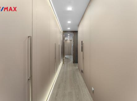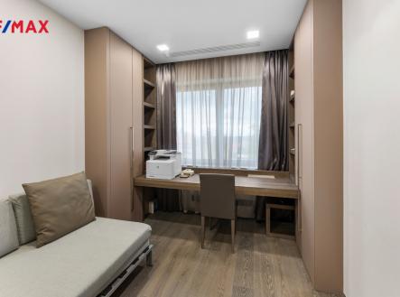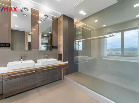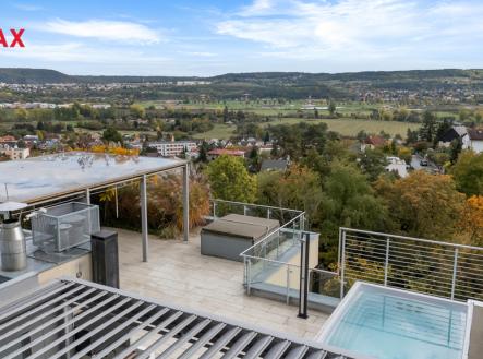 Hledáte jedinečné bydlení? Luxusní a zároveň funkční domov? Nabízíme úžasný penthouse o dispozici 5+kk s až třemi parkovacími místy, střešní terasou s fitness, bazénem, vířivkou, letní kuchyní a skvělými výhledy do okolí v projektu Terasy Radotín. BYT Samotný byt zabírá celé 2. nadzemní podlaží (dům je ve svahu a má ještě 3 podzemní obytná podlaží) domu z roku 2014. Byl kompletně přebudován ze dvou původních jednotek tak, aby byl luxusní, ale zároveň pohodlný a funkční. Byt využívá vše, co nabídl původní projekt – vysoké stropy, výhled do údolí Berounky přes velkoformátová okna, kvalitní technologii vytápění či soukromí menšího projektu, ovšem celek posouvá pojetím na novou úroveň. Výměra samotného bytu činí více než 260 m2. Dispozičně je řešen jako 5+kk. Všude najdeme vestavěný nábytek, do kterého jsou zakomponovány interiérové dveře. Ke třem pokojům patří koupelna s velkým sprchovým boxem, volně stojící vanou a WC. Samostatnou kapitolou je pak master bedroom s obrovskou šatnou, koupelnou s vanou s výhledem do údolí či vlastní terasou. Velký obývací pokoj disponuje krbem na dřevo a neviditelnými reproduktory ve stropě, jídelní částí, na kterou navazuje další terasa s vyhříváním či ozvučením a kompletně vybavená kuchyně. K dispozici je dále toaleta pro hosty a hlavně spousta úložného prostoru prakticky na všech stěnách. K bytu patří také až 3 prostorná parkovací místa v garážích v 1.PP a 2 velké sklepy. STŘEŠNÍ TERASA Střecha je využita na maximum. Pohodlným vnitřním schodištěm je přístupná klimatizovaná (a vytápěná) zimní zahrada, soužící jako fitness. S ní sousedí letní kuchyně vybavena spotřebiči Miele (lednice, myčka, wok, indukce, multifunkční mikrovlnná trouba či profesionální výrobník a drtič ledu) a bioklimatická pergola s integrovaným vytápěním. Na samotné terase je pak k dispozici vyhřívaný bazén s dálkově ovládaným krytem, vířivka, druhá pergola pro opravdu velké sezení a zahradní domek. Z celé terasy jsou fantastické výhledy do údolí. Zároveň je důmyslně kryta zelení a poskytuje naprosté soukromí. TECHNOLOGIE Celý byt je nabitý technologiemi. Všechny funkce jako je svícení, vytápění a chlazení či stínění je ovládáno přes rozhraní od firmy Creston přes panely v bytě i on-line. Byt má vlastní nezávislou jednotku vzduchotechniky s chlazením ve všech místnostech, ohřev teplé vody a vytápění (podlahové) je řešeno centrálně přes systém tepelných čerpadel. V kuchyni jsou použity kvalitní spotřebiče, motor od digestoře je umístěn mimo kuchyni, aby jeho provoz nerušil. K dispozici je i centrální vysavač. Myšleno bylo na každý detail. Vstup do bytu je přes bezpečnostní dveře, před které se do soukromé chodby lze dostat jak přes soukromé schodiště či výtahem s použitím čipu. Samozřejmostí je sofistikovaný bezpečnostní systém a kamery, vše funkční i on-line. LOKALITA Skvělá je i lokalita – s dobrým dojezdem do centra i na letiště. Les přímo za domem, v místě nespočet sportovišť včetně bazénu a biotopu, školy, školky a další služby, mj. kino.