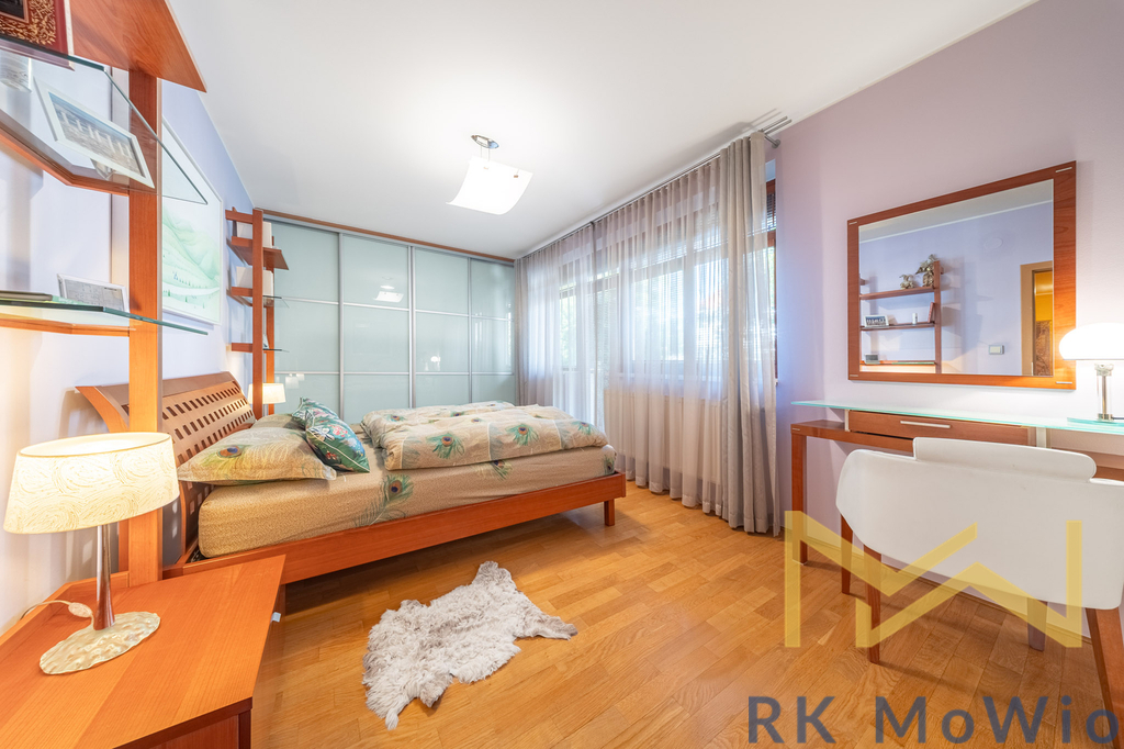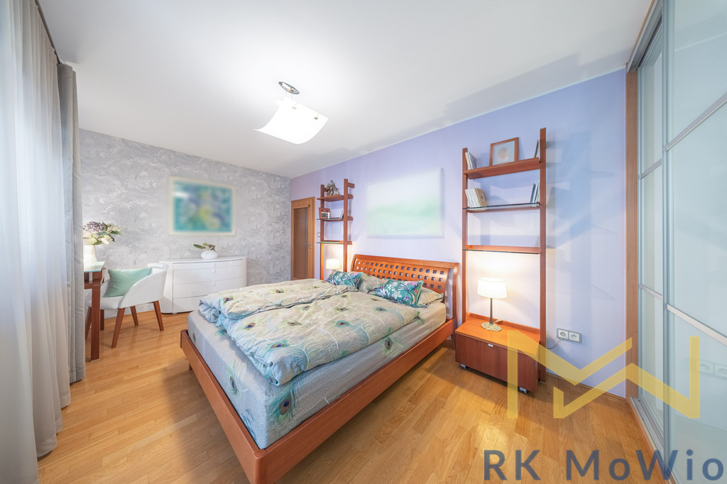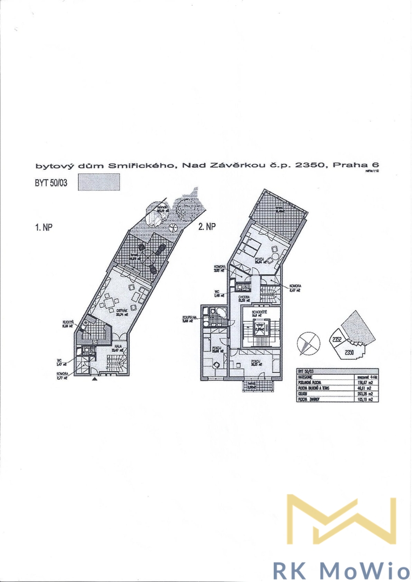 Nabízíme prostornou mezonetovou jednotku umístěnou ve svahu v přízemí a prvním patře (prvním a druhém nadzemním podlaží) o dispozici 4+kk a podlahové ploše 157 m², doplněnou o dvě terasy (24 m² a 21 m²), balkón (5 m²) a předzahrádku o velikosti 36 m² v lokalitě Prahy 6 – Břevnov, v ulici Smiřického. Byt se rozkládá na dvou podlažích. Přízemí tvoří vstupní hala a velkorysý obývací pokoj propojený s plně vybavenou kuchyňskou linkou kvalitními spotřebiči. Odtud je přímý vstup na terasu a do předzahrádky. Horní patro nabízí tři světlé pokoje – jeden s terasou, druhý s balkónem a třetí lze využít jako pracovnu. Pokoje jsou vybaveny vestavěným nábytkem - skříně. Dále se zde nachází komora, dvě koupelny, z nichž jedna disponuje vanou a druhá sprchovým koutem a dvě samostatné toalety. V interiéru byly použity kvalitní materiály: dřevěné podlahy v obytných místnostech a dřevěné schodiště, zatímco chodby, koupelny, terasy i balkón jsou pokryty odolnou dlažbou. Topení je zajištěno samostatným plynovým kotlem. K jednotce náleží také dvě garážová stání (číslo 11 a 22) a sklep. Lokalita vyniká výbornou dopravní dostupností – v pěší vzdálenosti se nachází zastávky autobusu Kajetánka a tramvaje Marjánka, odkud je rychlé a pohodlné spojení na linku metra A (stanice Hradčanská a Malostranská). V bezprostředním okolí najdete nejen supermarkety Billa a Kaufland, ale také menší specializované obchody, pekárny, kavárny a vyhlášené restaurace, které přispívají k příjemné atmosféře čtvrti. Díky blízkosti parků, sportovišť a rozlehlých zelených ploch je místo ideální pro komfortní a klidné bydlení s kompletní občanskou vybaveností.