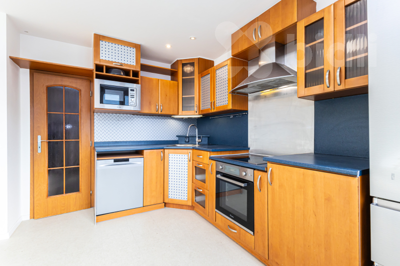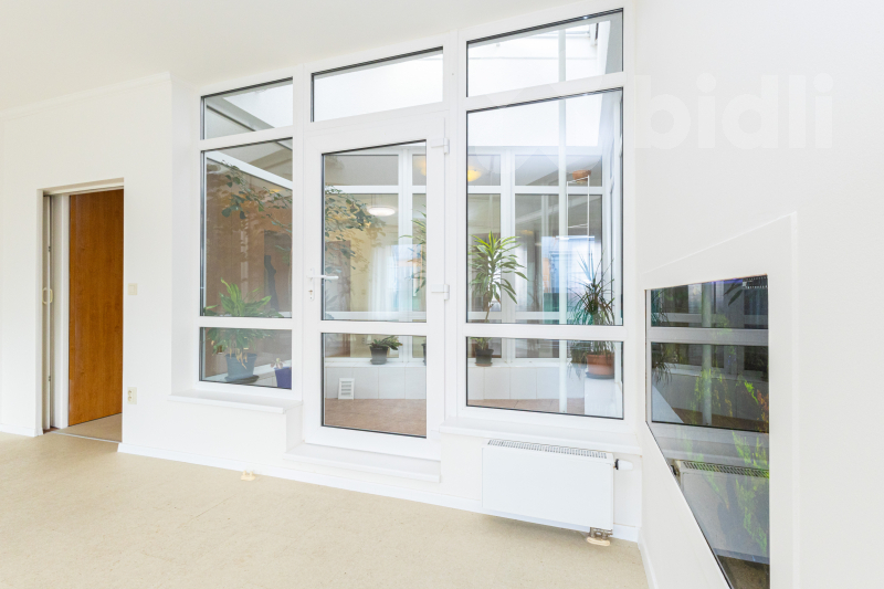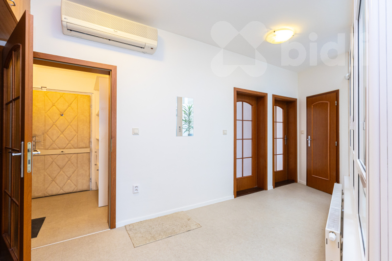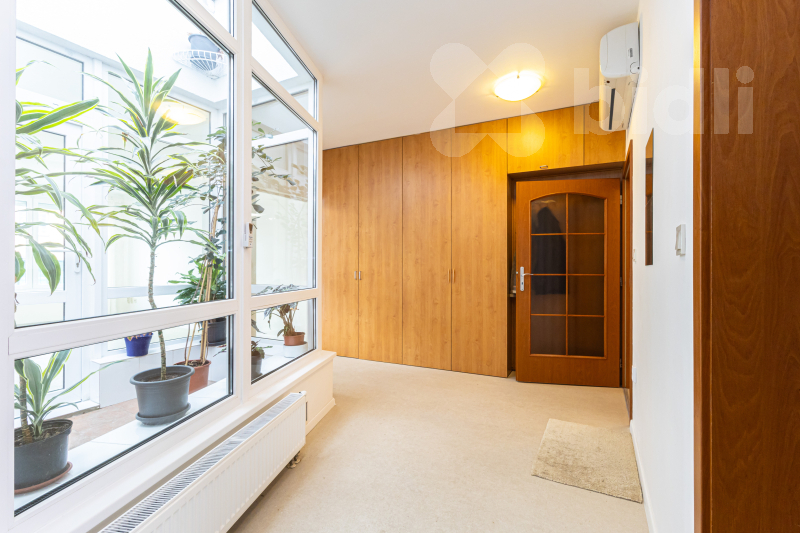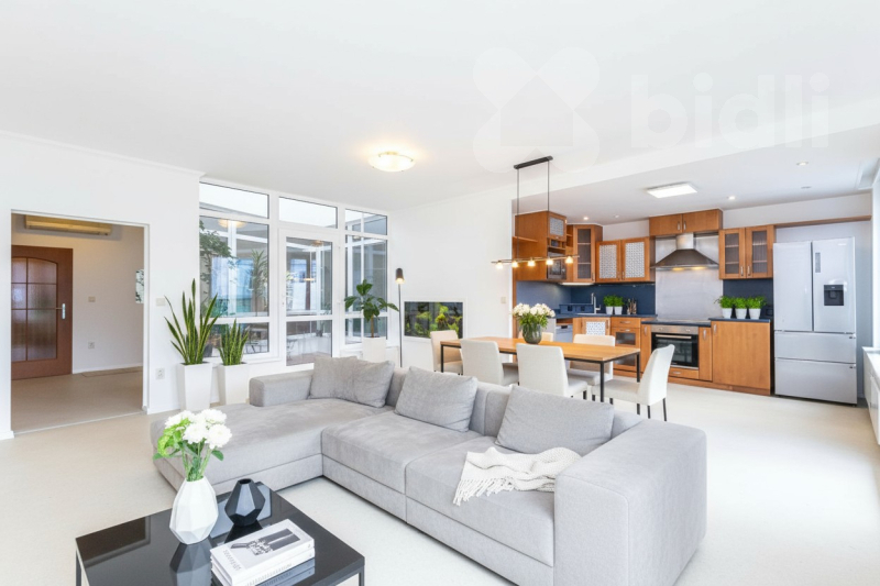 Toužíte po domácí sauně či minitělocvičně nebo milujete zelené rostliny a květiny, bylinky, domácí jahody a rajčata, ale zároveň potřebujete zázemí ve lkoměsta? Pak je tu pro vás jedinečný, prostorný a prosvětlený byt o dispozici 3+kk, který má navíc dvě velké terasy a vnitřní zimní zahradu. Umístěn je v Praze 4 pár kroků od Kunratického lesa, v Zeleném údolí, kde se spojuje komfort městské vybavenosti čtvrtí Krč, Libuš a Kunratice s blízkostí přírody v největším lese v Praze. Byt je umístěn v 5. patře, hned naproti výtahu, v moderním domě z roku 2000. Celková výměra je 104,25 m2, z toho 90,65 m2 je užitná plocha uvnitř bytu a 13,6 m2 mají terasy. Dispozice 3+kk zahrnuje skutečně komfortní obývací prostor s kuchyňským koutem, velký 38 m2, který je ozvláštněn velkým zabudovaným akváriem. Na kuchyni navazuje velká komora se zázemím pro akvárium a napojením pro pračku a sušičku. Na protější straně bytu je vstupní předsíňka, hala se šatními skříněmi, dvě samostatné ložnice a koupelna s vanou, sprchovým koutem, umyvadlem a samostatným WC. Byt je vybaven klimatizační jednotkou, kterou lze i ekologicky vytápět. K dispozici je ihned, je čerstvě vymalovaný a bez vybavení (pro lepší představu jsou v inzerci využity vizualizace). Byt je nadstandardně odhlučněný a zabezpečený. Originálním prvkem je zimní zahrada vprostřed bytu, která tvoří úžasnou zelenou oázu viditelnou ze všech zákoutí bytu a je skvělým místem pro vestavbu sauny, pro umístění běhacího pásu či rotopedu, pro bohaté pěstování květin, například krásných orchidejí, nebo pro umístění převislých květináčů s jahodami a dalším ovocem, zeleninou a bylinkami. Dalším relaxačním místem jsou hned dvě terasy - větší, jižně orientovaná a vybavená markýzou, navazuje na jídelnu a nabízí možnost venkovního stolování, na druhou, severozápadní, se vstupuje z ložnice rodičů. Je odsud výhled na dětské hřiště ve vnitrobloku a možnost posezení pro večerní pohodu. Díky umístění v nejvyšším patře terasy nabízí klid, soukromí a krásné výhledy. S bytem lze zároveň pronajmout či koupit garážové stání, dostatečně velké pro osobní automobil i motorku. Společné prostory domu jsou dobře udržované. Vytápění a teplá voda jsou centrální. Nová čtvrť Zelené údolí se nachází u nemocnice IKEM a nabízí blízké školy, školky, restaurace a obchody a skvělou dostupnost metra Budějovická a Kačerov. Zároveň však zůstává klidnou rezidenční čtvrtí u Kunratického lesa, s jeho cyklostezkami, zookoutky, hradem, hospůdkou a zákoutími pro procházky. Neváhejte - jedná se o velmi originální propojení města s přírodou, světlem a prostorem, které jinde nenajdete.