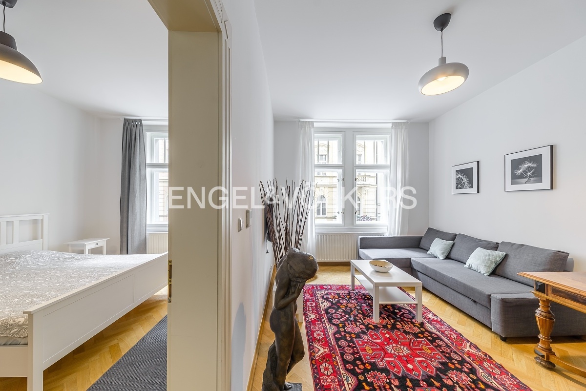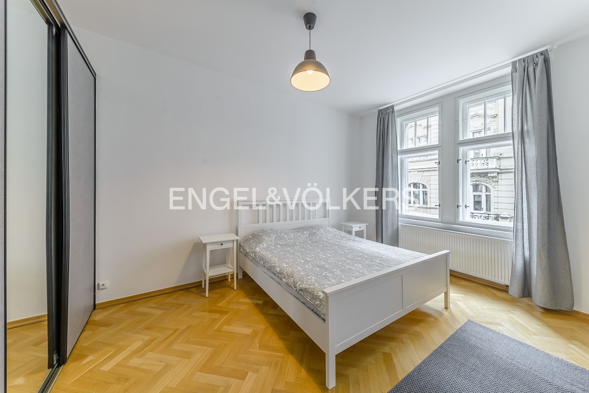 Unikátní východně orientovaný byt, který je součástí prémiové rezidence, která vznikla propojením dvou činžovních domů s recepcí. Dům se nachází v ulici Bílkova, jenž je bezpochyby jednou z nejprestižnějších ulic v centru Prahy, avšak mimo hlavní turistické trasy. Byt je po citlivé rekonstrukci, při níž byl kladen důraz na kvalitu použitých materiálů a má prakticky řešenou dispozici 2+1. Jsou zde nové parkety, původní repasované dvoukřídlé dveře a dřevěná špaletová okna. Součástí je plně vybavená kuchyňská linka se zabudovanými spotřebiči. V ložnici jsou vestavěné skříně, které poskytují dostatek potřebných úložných prostor. Moderní koupelna se sprchovým koutem a toaletou. Byt je kompletně vybaven, včetně pračky.