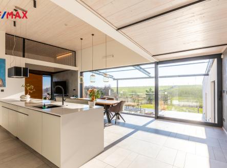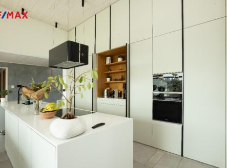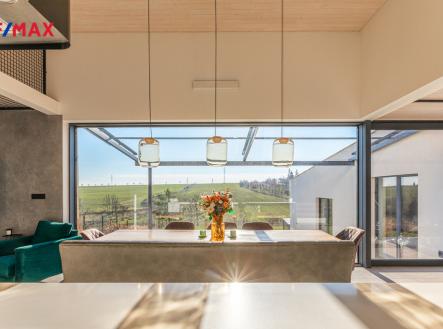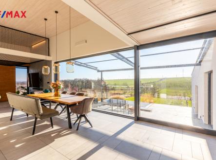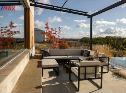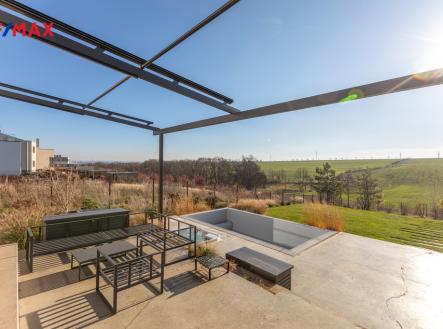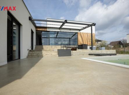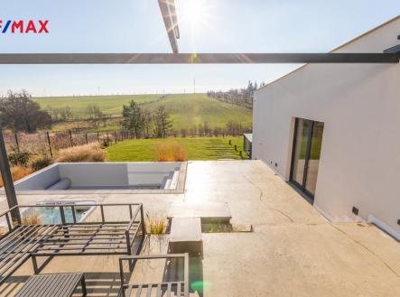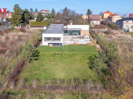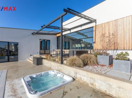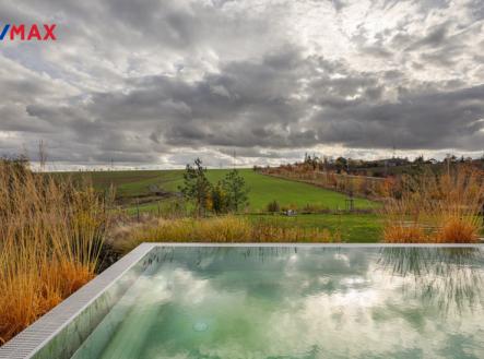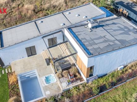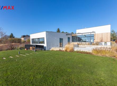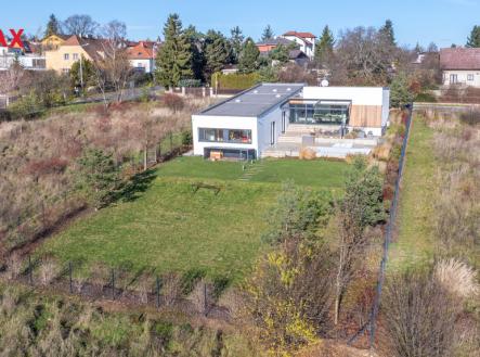 Exkluzivně nabízíme zcela jedinečnou nemovitost umístěnou v klidné ulici, v rezidenční lokalitě, v první řadě domů s krásným volným výhledem do zeleně a do okolí. Zděný zateplený dům byl kolaudován v roce 2020, má skvěle promyšlenou dispozici a je chytře zasazen do mírně svažitého terénu. Jednopodlažní vila s celkovou plochou 276 m2 (dům 216 m2 + terasa s bazénem 65 m2) má obývací (televizní pokoj) s navazující prostornou jídelnou a kuchyní (celkem o výměře 61 m2), hlavní ložnici se šatnou a koupelnou s WC, tři pokoje, koupelnu s WC, chodbu s vestavěnými skříněmi, tělocvičnu/hernu, garáž pro tři vozy (49 m2), technickou místnost a samostatné WC. Základní parametry domu – zdivo Porotherm + zateplení 16 cm minerální vata, okna -hliníkové profily s výplněmi z izolačními trojskly, vytápění tepelným čerpadlem voda vzduch, teplovodní podlahové vytápění v celém domě, alarm, vchodové dveře na otisk prstu, kamerový systém + Jablotron, kvalitní materiály a zařizovací předměty. Vila je v precizním provedení, interiér je vkusně zařízen vestavěným nábytkem. Terasa o výměře 65 m2 má elektricky ovládané zastínění, zapuštěný přelivový bazén 6x3 s vyjížděcí krycí nosnou lamelou a vířivku, vše od firmy BWT. Doporučuji prohlídku této výjimečné nemovitosti.
