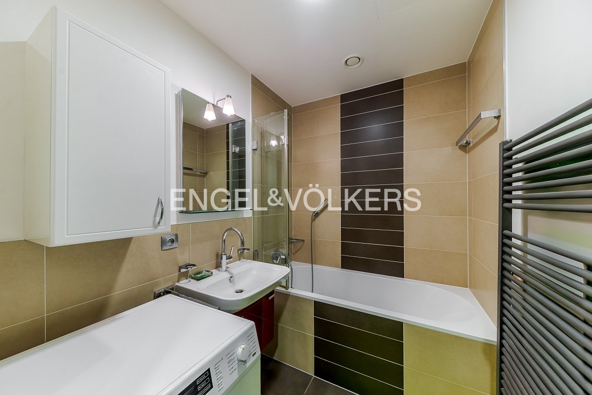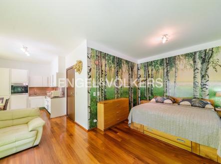 Nabízím k okamžitému pronájmu exkluzivní, plně vybavený byt 1+kk o rozloze 36 m² s balkonem v 1. patře prestižní rezidence Kavčí hory s krásným výhledem na Prahu. Byt je zařízen masivním nábytkem, disponuje prostornou šatní skříní v předsíni, samostatnou toaletou a koupelnou s vanou a pračkou. Kuchyňská linka je vybavena špičkovými spotřebiči Miele, obytný prostor je vizuálně oddělen na zónu pro spaní a obývání. Byt je plně klimatizovaný a nabízí dostatek úložných prostor. K bytu náleží menší balkon, sklep a parkovací stání v garáži s kamerovým systémem. Rezidence poskytuje 24/7 recepci, reprezentativní lobby a bezplatné fitness pro rezidenty. V ceně poplatků je zahrnut pravidelný úklid jednou za 14 dní a praní ložního prádla. Ideální bydlení pro náročné klienty hledající komfort, bezpečí a služby na vysoké úrovni v širším centru Prahy.