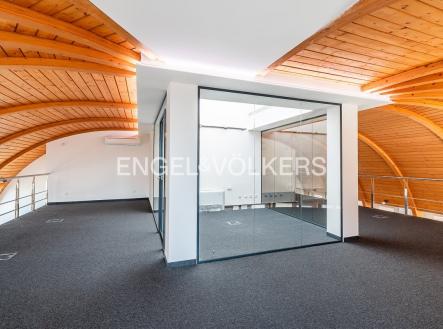 Výše nájmu 3 521 EUR / měsíc. Nabízíme k pronájmu výjimečný mezonetový prostor s originální architekturou, jehož dominantou je oblá stropní konstrukce, která umocňuje pocit vzdušnosti a jedinečné atmosféry. Díky svému otevřenému dispozičnímu řešení a výraznému charakteru je prostor ideální pro kreativní studia, workshopy, komunitní aktivity či jiné tvůrčí a společenské projekty. Dispozice zahrnuje několik samostatných místností, které lze flexibilně upravit dle potřeb nájemce. Některé části jsou prosklené, což přirozeně propojuje interiér a zajišťuje dostatek denního světla. V kombinaci s velkými okny tak vzniká inspirativní prostředí vhodné jak pro práci, tak pro setkávání. Součástí prostoru je plně vybavená kuchyň a sociální zázemí, což umožňuje komfortní využití i při delších pobytech. Tento prostor představuje harmonické propojení nevšední architektury, praktičnosti a světla – je to ideální volba pro ty, kteří hledají místo s charakterem a tvůrčím potenciálem.