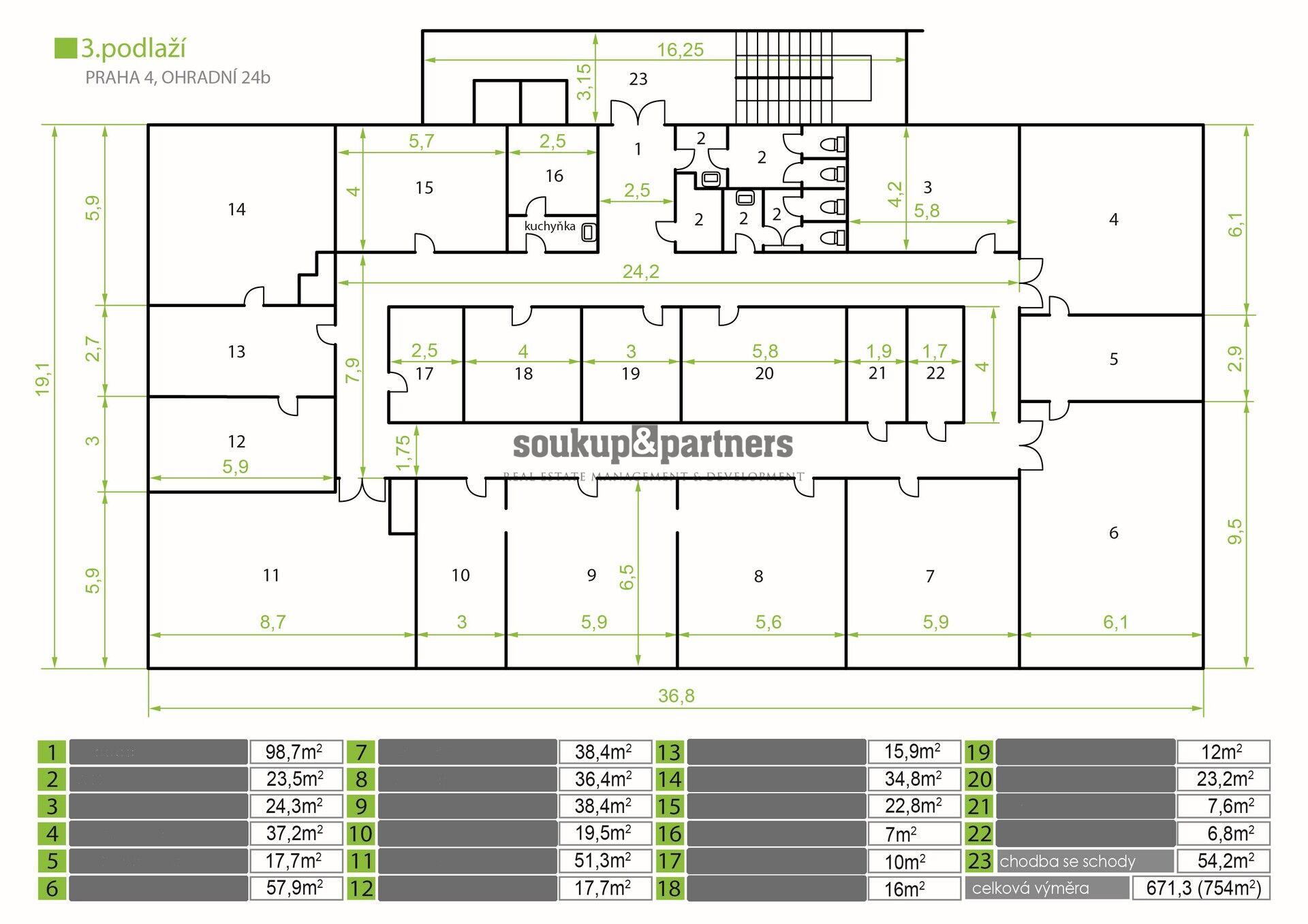 Kancelář 36,4 m2, Praha 4 - Michle.
