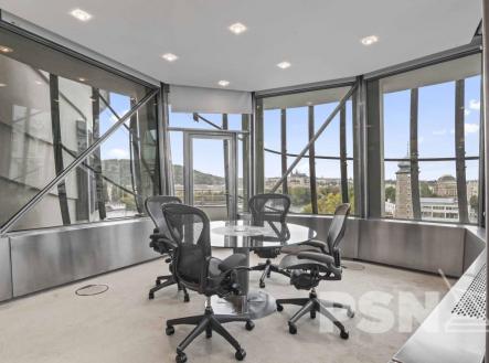 Kancelář s výhledem na Vltavu a Pražský hrad v ikonickém Tančícím domě