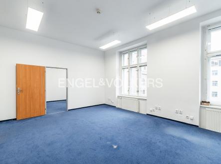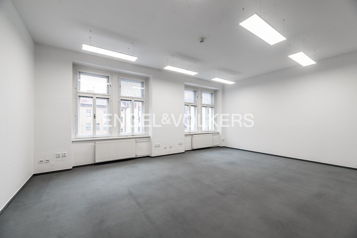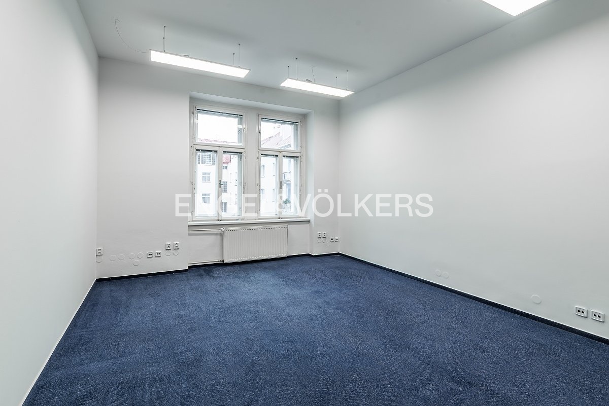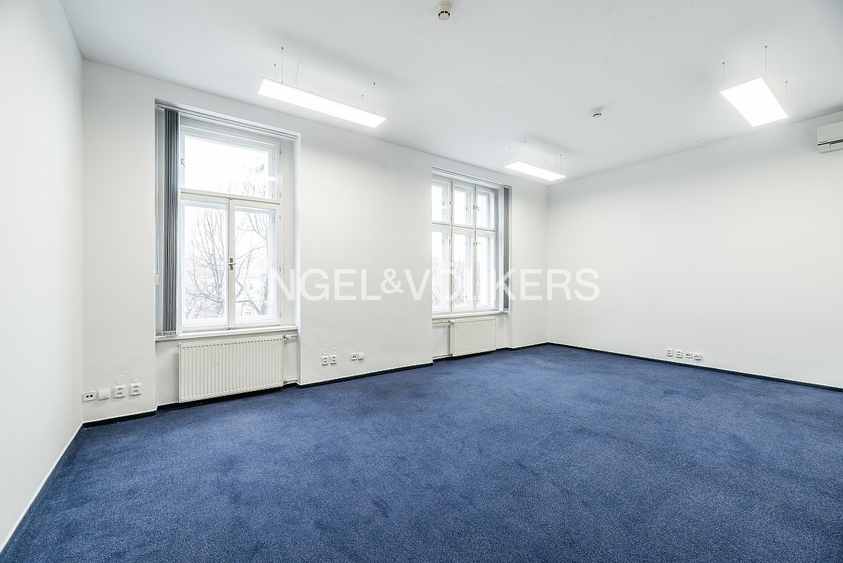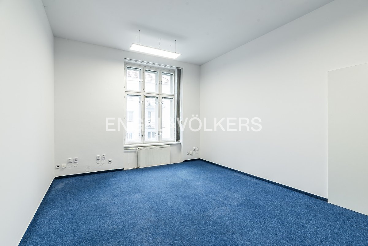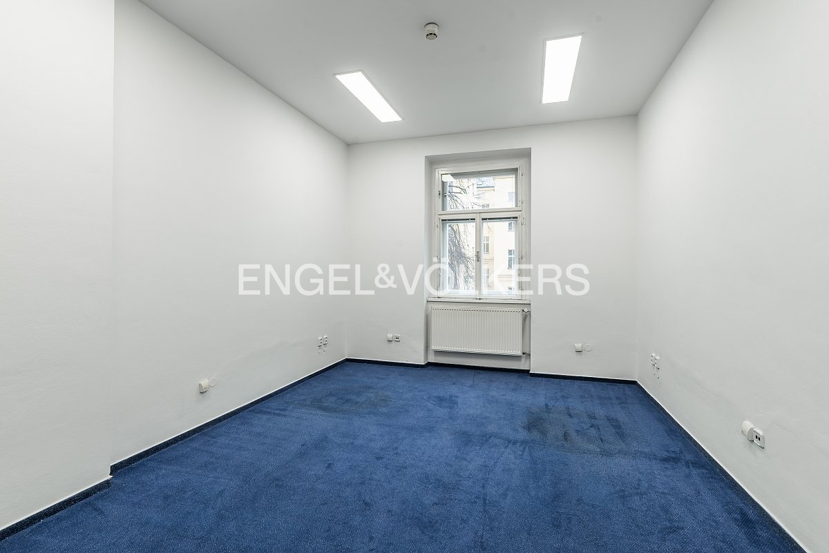 Reprezentativní kancelářské prostory o celkové výměře 450,51 m² se nachází v zrekonstruované kancelářské budově v atraktivní části Žižkova. Prostor je dispozičně řešen jako jedenáct místností, které lze využít například jako kombinací pracovních kanceláří či menších zasedacích místností. Díky špaletovým oknům působí interiér světlým a příjemným dojmem a nabízí dostatek denního světla. Kancelář je vybavena kobercem, centrálním plynovým vytápěním a klimatizací v každé místnosti, což zajišťuje komfortní pracovní prostředí po celý rok. V budově je k dispozici optické připojení k internetu od společnosti Quantcom, vhodné i pro náročné provozy. Součástí objektu je kvalitní zázemí a vysoký standard bezpečnosti. Přístup do budovy je zajištěn na čipy, objekt je monitorován kamerovým systémem a k dispozici je recepce v čase 8:00–18:00, přičemž je zachován neomezený přístup 24/7/365. Nájemcům je k dispozici společná kuchyňka, oddělené toalety a navíc jednací místnosti v přízemí budovy, které lze využívat dle potřeby. Prostory jsou vhodné pro dlouhodobý pronájem a představují ideální řešení pro firmy hledající funkční a příjemné kanceláře v širším centru Prahy s výbornou dostupností.