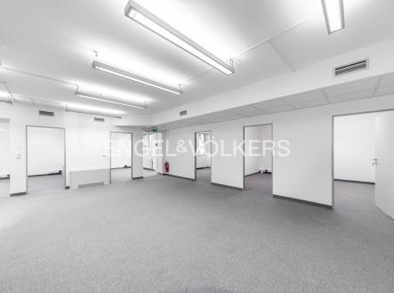 CENA ČINÍ 3 027 EURO/měsíc. Rádi bychom Vám představili možnost pronájmu kancelářských prostor v prestižní ulici Dukelských hrdinů, v nezaměnitelné budově European Business Center. Při vstupu přes recepci se dostanete do přízemní rozsáhlé kanceláře o celkové ploše 378 m2. Prostor zahrnuje otevřenou pracovní zónu pro týmovou spolupráci, menší kanceláře pro soukromé konzultace a zasedací místnost pro Vaše obchodní jednání. Součástí kaceláří jsou skladovací prostory, serverovna s klimatizací a samozřejmě také praktická kuchyňka a toalety. Prestižní čtvrť Holešovice patří k velmi rychle rozvíjejícím se a nabízí velmi kvalitní obchodní a občanskou vybavenost. Přímo před budovou se pak nachází tramvajová zastávka. Pro více informací nás neváhejte kontaktovat.