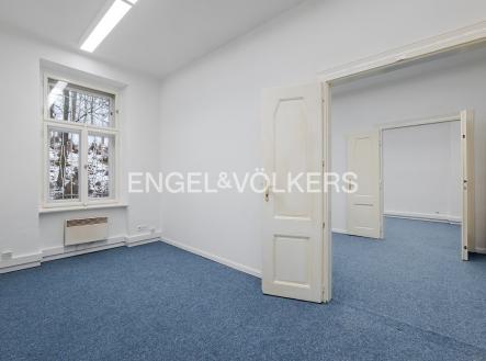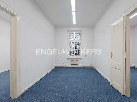 Prostorné, nezařízené kanceláře sestávající ze čtyř místností, chodby a toalety o podlahové ploše 89 m² se nacházejí v přízemí cihlového domu v atraktivní oblasti Prahy 5 – Smíchov. V kanceláři je nový zátěžový koberec. Tato budova byla postavena na počátku 20. století v secesním stylu a nedávno prošla citlivou rekonstrukcí. V současnosti je využívána jako polyfunkční objekt pro administrativní účely a bydlení. Objekt se nachází v širším centru Prahy, nedaleko nově budované lokality Nový Smíchov na úpatí rezidenční čtvrti Malvazinky. Je dobře dostupný jak MHD, tak autem z centra i z městských okruhů. V bezprostředním okolí objektu se nacházejí dva městské parky, škola, restaurace, obytné i administrativní objekty, obchody, služby i banky. Stanice metra B Anděl je asi 5 minut chůze od domu. Poplatky se hradí zvlášť. Provize jeden měsíční nájem + DPH. Kancelář je ihned k dispozici.