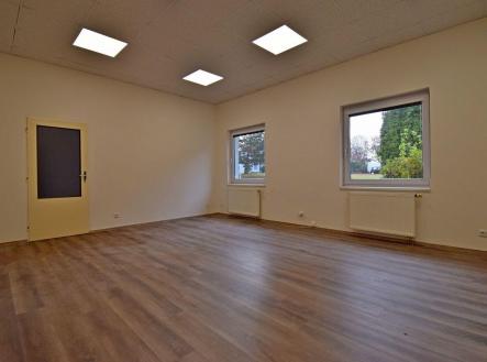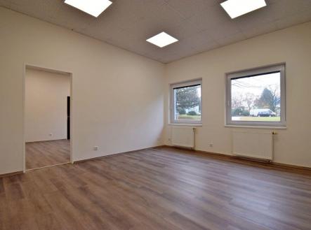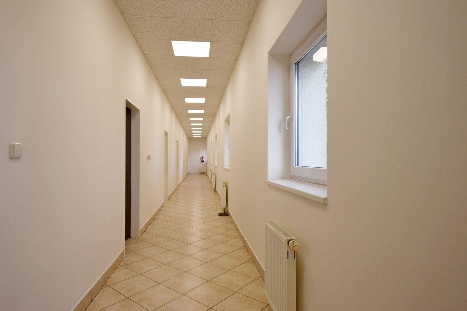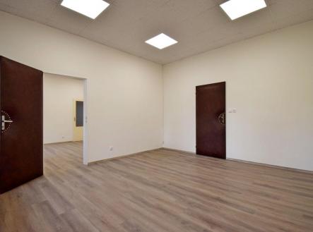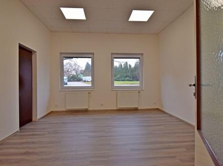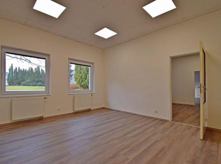 Nabízíme nebytové prostory 143 m² v přízemí jednopatrové budovy v uzavřeném areálu s ostrahou 24/7. Prostory se skládají z 5 kanceláří o velikosti od 18 m2 do 25 m2, do kterých se vchází z centrální chodby, na niž navazuje malá kuchyňka s koupelnou. Všechny kancelářské místnosti mají samostatné vstupy z prostorné chodby a současně jsou vzájemně propojeny. Součástí pronájmu jsou rovněž dámská a pánská toaleta. Parkování je možné pronajmout před domem. Cena za 1 parkovací místa činí 500 Kč/měs. Volné ihned.