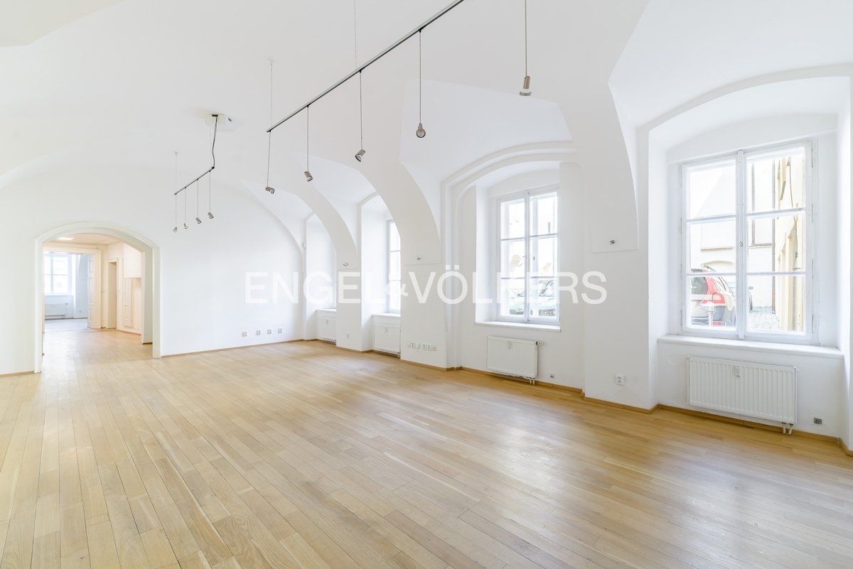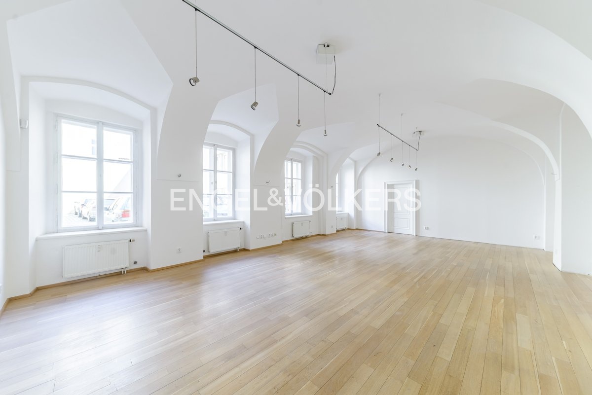 Obchodní prostor v srdci Malé Strany disponuje 80 m², v přízemí historické budovy. Prostor je možný využít jako kancelář či showroom. Vlastní zázemí, dvě toalety a možnost menšího skladu či kanceláře se vstupem ze dvora. Prostor je skvěle dostupný, tramvajová zastávka Hellichova minutu chůze od domu. Výhodou objektu je vlastní recepce a zabezpečení elektronickým systémem. Možnost až 2 parkovacích míst ve vnitrobloku. V případě zájmu o pronájem lze s majitelem jednat o kontribuci na dokončení prostoru. Parkovací stání za 4 000 Kč/měsíc bez DPH. Elektřina převedena na nájemce. Majitelé preferují plátce DPH. Provize jeden měsíční nájem + DPH.