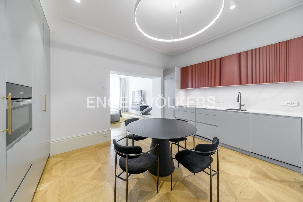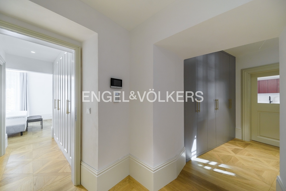 Pinkasův palác ze 16. století prošel kompletní rekonstrukcí, při které se dbalo na zachování původních prvků a zároveň vytvoření moderní rezidence s výtahem, recepcí, wellness s finskou saunou a parní saunou, posilovnou. Luxusní plně zařízený a klimatizovaný apartmán se nachází v prvním nadzemním podlaží této exkluzivní rezidence. Unikátní dispozice se dvěma samostatnými ložnicemi s vestavěnými skříněmi a en-suite koupelnami, velkorysým obývacím pokojem, oddělenou kuchyní. Kuchyň na míru je plně vybavená spotřebiči Miele. V apartmánu jsou dřevěné podlahy, klimatizace, vestavěné skříně a elektronicky ovládané rolety. Pračka a sušička jsou součástí pronájmu. Pro nájemníky je možnost zvolit úroveň služeb od standardních až po exkluzivní včetně hotelových služeb. Byt je možné pronajmout i střednědobě. Poplatky se odvíjí od zvoleného balíčku služeb Standard, Exclusive, Premium, či Deluxe.