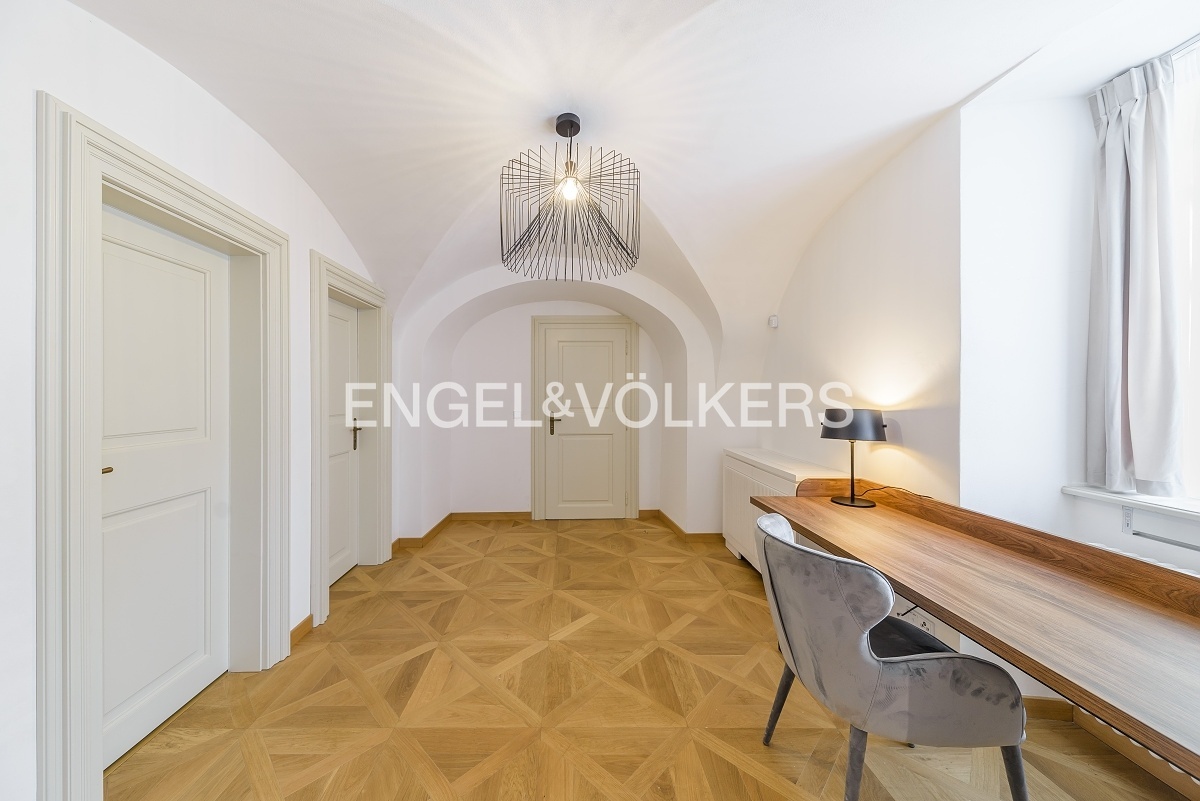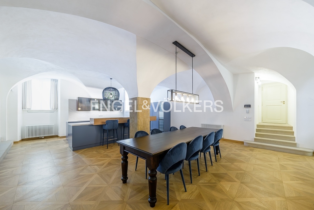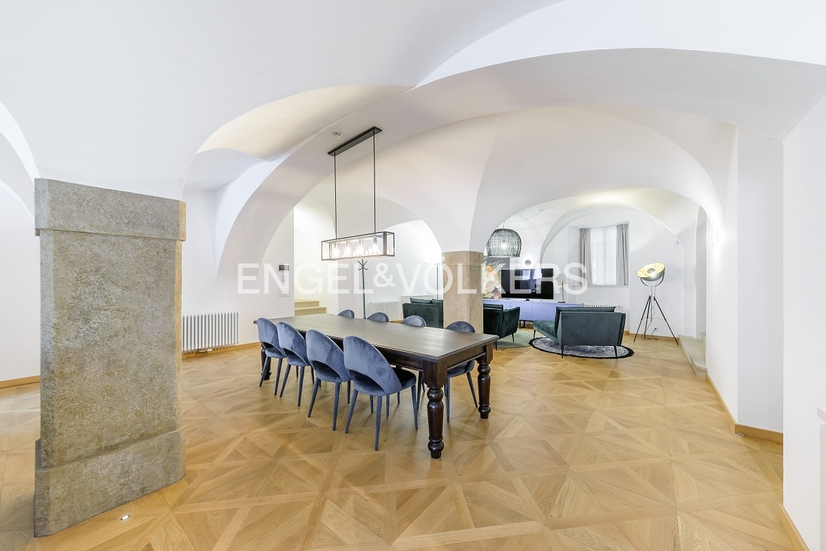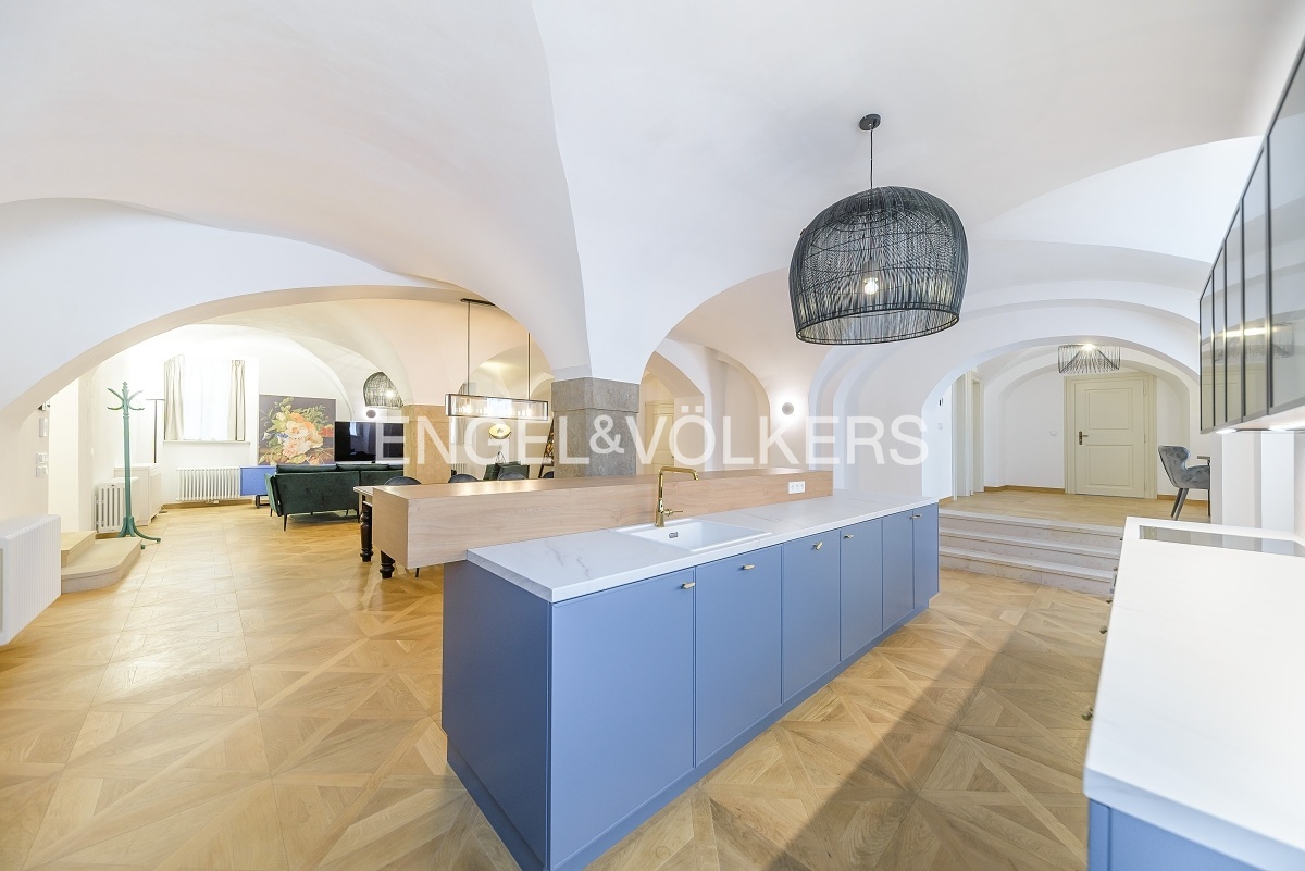 Pinkasův palác ze 16. století prošel kompletní rekonstrukcí, při které se dbalo na zachování původních prvků a zároveň vytvoření moderní rezidence s výtahem, recepcí, wellness s finskou saunou a parní saunou, posilovnou a možností parkingu. Luxusní plně zařízený a klimatizovaný apartmán se nachází v přízemním podlaží této exkluzivní rezidence. Unikátní dispozice se dvěma samostatnými ložnicemi s vestavěnými skříněmi a en-suite koupelnami, velkorysým obývacím pokojem spojeným s kuchyní. Kuchyň na míru plně vybavená spotřebiči Miele. V apartmánu jsou dřevěné podlahy, klimatizace, vestavěné skříně a elektricky ovládané rolety. Pračka a sušička je součástí pronájmu. Pro nájemníky je možnost zvolit úroveň služeb od standardních až po exkluzivní včetně hotelových služeb. Byt je možné pronajmout i střednědobě. Poplatky se odvíjí od zvoleného balíčku služeb Standard, Exclusive, Premium, či Deluxe.