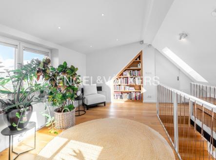 K pronájmu je připraven plně zrekonstruovaný a kompletně zařízený mezonetový byt se čtyřmi terasami, umístěný ve třetím nadzemním podlaží zrekonstruovaného bytového domu se společnou zahradou, bez výtahu. V dolní části bytu se nachází obývací pokoj s plně vybavenou kuchyní se spotřebiči značky Siemens a přímým vstupem na dvě terasy, hlavní ložnice se šatnou, vestavěnými úložnými prostory, přístupem na dvě terasy a nádherným výhledem na město, Petřín a Národní divadlo, dále druhá ložnice s vestavěnými úložnými prostory, koupelna s vanou i sprchovým koutem a vstupem na terasu, druhá koupelna s toaletou, pračkou a sušičkou a také vstupní hala. V horním podlaží se nachází galerie a další dvě ložnice / pokoje pro hosty a třetí koupelna se sprchovým koutem a toaletou. Byt je vybaven rekuperací, masivními dřevěnými podlahami, dlažbou, bezpečnostními vstupními dveřmi, vestavěnými úložnými prostory, tepelným čerpadlem, podlahovým vytápěním v dolním patře a kompletními spotřebiči. Samozřejmostí je alarm, videotelefon a přístup do společné zahrady s ohništěm a prostorem pro grilování. Dům se nachází v klidné rezidenční části Smíchova s výbornou dostupností do centra a kompletní občanskou vybaveností. Pár zastávek autobusem je zastávka metra Anděl a obchodní centrum Nový Smíchov. V okolí se nacházejí parky jako například Santoška a Nikolajka a také Francouzské lyceum nebo anglická školka Nessie. Poplatky spojené s užíváním bytu činí 4 000 Kč. Kauce činí dva měsíční nájmy. Nájemce je seznámen s provizí realitní kanceláři ve výši jednoho měsíčního nájmu + DPH.