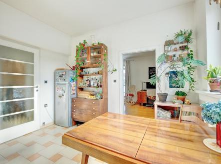 K koupi nabízím krásný, světlý byt o dispozici 2+1 s obrovskou terasou, který se nachází v posledním patře dobře udržovaného funkcionalistického domu bez výtahu z roku 1942. Dům i byt prošly v roce 2008 kompletní rekonstrukcí. Internet do bytu veden optickým vláknem. Podle prohlášení vlastníka jsou velikosti následující: byt 61,53 m2 + terasa 45,43 m2 a sklep 4,93 m2 přičemž podle našeho měření je byt přibližně o 1 m2 větší. Současnou dispozici lze jednoduše upravit na 3+kk. Obývací pokoj směřuje na jih do ulice Evropská, ložnice na sever do klidné ulice Mydlářka. Dominantou bytu je velkorysá terasa - ideální místo pro vytvoření městské zahrady. Ranní káva, večerní sklenka vína prostě pohoda. Člověk se tu cítí jako v malém domku uprostřed města. Součástí prodeje je sklepní koje a možnost využívat vyhrazené parkovací místo ve vnitrobloku domu. Byt je ve stavu odpovídajícím běžnému opotřebení. V místech nad okny dochází ke kondenzaci vlhkosti, která se v zimních měsících projevuje vznikem plísně. Její příčina i navrhované řešení jsou doloženy odborným posudkem a měřením termokamerou. Zálohy na služby a energie (TUV, topení apod.) činí přibližně 5 500 Kč + 2 000 Kč příspěvek do fondu oprav, plus spotřeba elektřiny v bytě. Nemovitost se nachází v srdci Dejvic kousek od metra, letiště, kaváren a všeho, co dělá městské bydlení pohodlným stejně tak park Hanspaulka nebo Divoká Šárka jsou doslova za rohem. Ideální místo pro ty, kdo hledají kvalitní a kultivované bydlení s atmosférou v srdci Dejvic. Shrnutí: - světlý byt 2+1 s možností úpravy na 3+kk - velká terasa - plocha bytu 61,53 m2 + terasa 45,43 m2 + sklep 4,93 m2 = celkem 111,89 m2 - parkovací místo ve vnitrobloku - funkcionalistická architektura z roku 1942 - po kompletní rekonstrukci (r. 2008) - dům i byt - klidná, žádaná lokalita Dejvic, blízko metra i přírody - reálně řešitelný technický problém s kondenzací vlhkosti (plíseň). Více informací najdete na našem webu v sekci projekty/mydlarka/ Do 14.12. budu mimo ČR, prosím kontaktujte mne tedy v ideálním případě e-mailem, v průběhu 2-3 dnů odpovím každému! Děkuji za pochopení. O.Valoušek