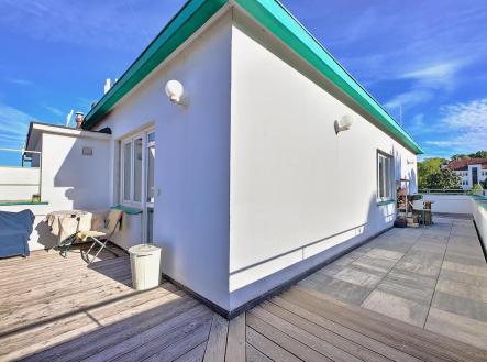 Krásný světlý byt s obrovskou terasou. Sklepní koje, parkovací místo.