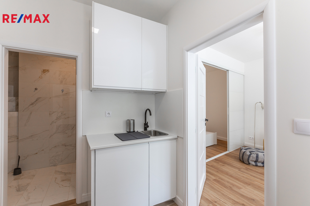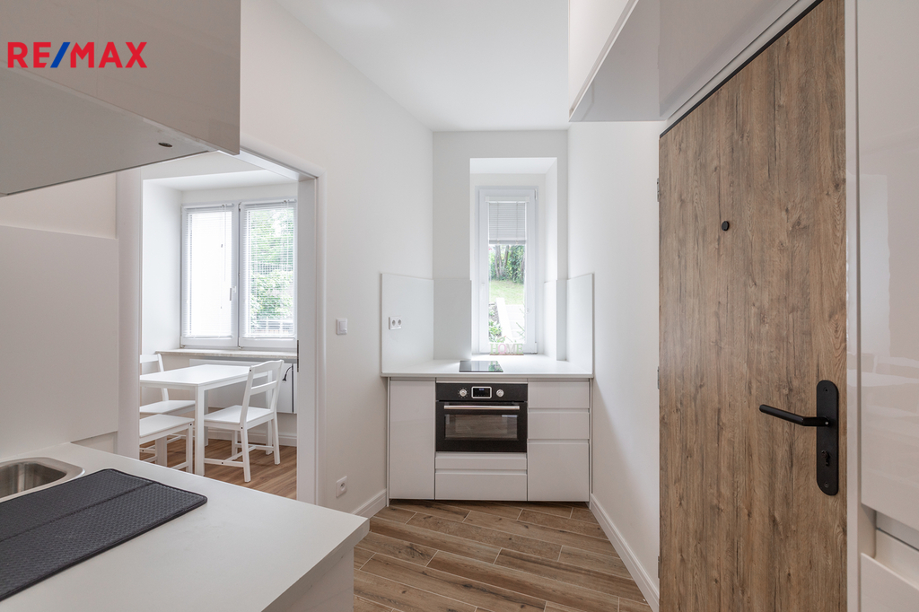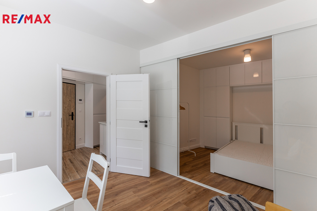 Hledáte kvalitní bydlení na Praze 6 se skvělou dostupností MHD? K dlouhodobému pronájmu nabízíme pěkný nový byt v kompletně zrekonstruovaném činžovním domě jen pár desítek metrů od stanice metra Veleslavín. Byt orientovaný do vnitrobloku o dispozici 1+1 nabízí plnohodnotnou kuchyni situovanou do vstupní chodby, velkou koupelnu se sprchovým koutem, WC a pračkou a pokoj s odděleným spaním posuvnou stěnou. Součástí je i vybavení na fotografiích včetně dostatku úložného prostoru v kuchyni i v ložnici. Vytápění zajišťují úsporné elektrické přímotopy a podlahové topení v koupelně a kuchyni, ohřev teplé vody pak elektrický bojler. Velkou výhodou je prostorný sklep (3,5 m2) a možnost využít dvorek a předzahrádku. Skvělá lokalita s výbornou dostupností MHD - stanice autobusu, metra i tramvaje pár minut od domu. Současně výborné spojení s letištěm a bydlení kousek od Hvězdy a Džbánu. Nájemné 20.500 Kč + elektřina (zálohy 2.500 Kč) + služby 1000 Kč. Kauce 2x nájem, provizi hradí pronajímatel. Volné od 1.4.2026!