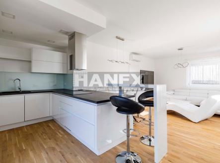 Luxusní kompletně zařízený střešní byt 3+kk (106 m2) s extra velkou terasou (128 m2). Plně klimatizovaný byt se nachází v posledním (2.) patře komorní rezidence s výtahem přímo do jednotky. Interiér bytu tvoří obývací pokoj s jídelním a kuchyňským koutem a vstupem na slunnou terasu s krásným výhledem. Dále jsou zde dvě ložnice, koupelna s vanou, sprchovým koutem, toaletou a samostatná toaleta. Plně vybavená kuchyňská linka v bílém lesku s vestavěnými spotřebiči a snídaňovým barem. Velké množství úložných prostor ve vestavěných skříních na míru v ložnicích i v chodbě. Elektrické rolety v oknech, elektrická markýza na terase. K bytu náleží garážové stání a sklepní kóje (3 m2). Jednotka se nachází v rezidenčním projektu Viladomy Na Vidouli jehož součástí je soukromý parkový areál. Projekt nabízí poklidnou atmosféru v blízkosti golfového hřiště Motol, tenisových kurtů a rozsáhlých parků. Vynikající občanská vybavenost v blízkém okolí a výborná dostupnost nejen do centra města. Pár kroků od domu je stanice autobusu s přímou návazností na linky metra A nebo B. Nákupní a zábavní centrum Metropole Zličín a Galerie Butovice v blízkosti. Garážové stání, sklep a vybavení bytu je součástí kupní ceny.