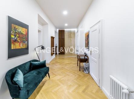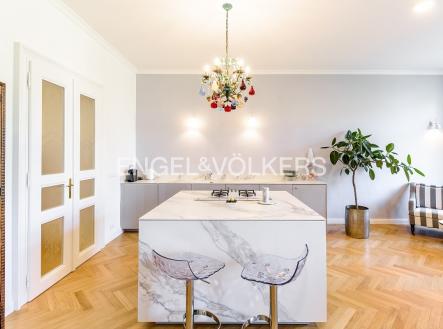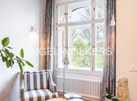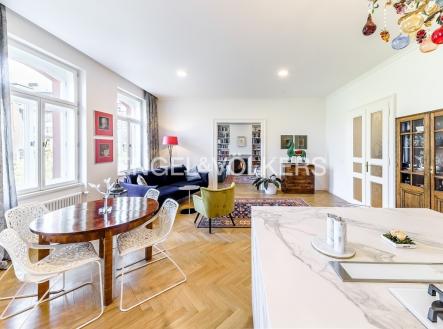 V jedné z nejoblíbenějších rezidenčních lokalit v Praze je nyní nabízen nákladně zrekonstruovaný velkoryse řešený byt s dispozici 3+kk plně vybavený luxusním nábytkem. Lokace historického činžovního domu umožňuje uklidňující výhledy do sluncem zalitých Riegerových sadů. Byt je prošpikovaný luxusními materiály od dubových parket, přes ořechové obklady, mramorem obloženého krbu až po velkoformátové desky přírodního kamene, to vše osvětlují ručně dělaná svítidla. Privátní část bytu je orientována do vnitrobloku; tvoří ji prostorná ložnice s francouzským oknem, vlastní šatnou a en-suite koupelnou s volně stojící vanou i luxusním sprchovým koutem. Dispozičně se byt skládá s prostorné předsíně s vestavěnými skříněmi, velkorysého obývacího pokoje s luxusní kuchyní plně vybavenou spotřebiči Smeg, relaxační místnosti s plynovým krbem, kterou je možné využívat také jako pokoj pro hosty, technické místnosti s pračkou i sušičkou a hostovské koupelny s toaletou a sprchovým koutem. K bytu je možné si pořídit 1-2 parkovací stání v areálu blízkého Sokola za příplatek.
