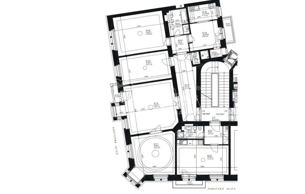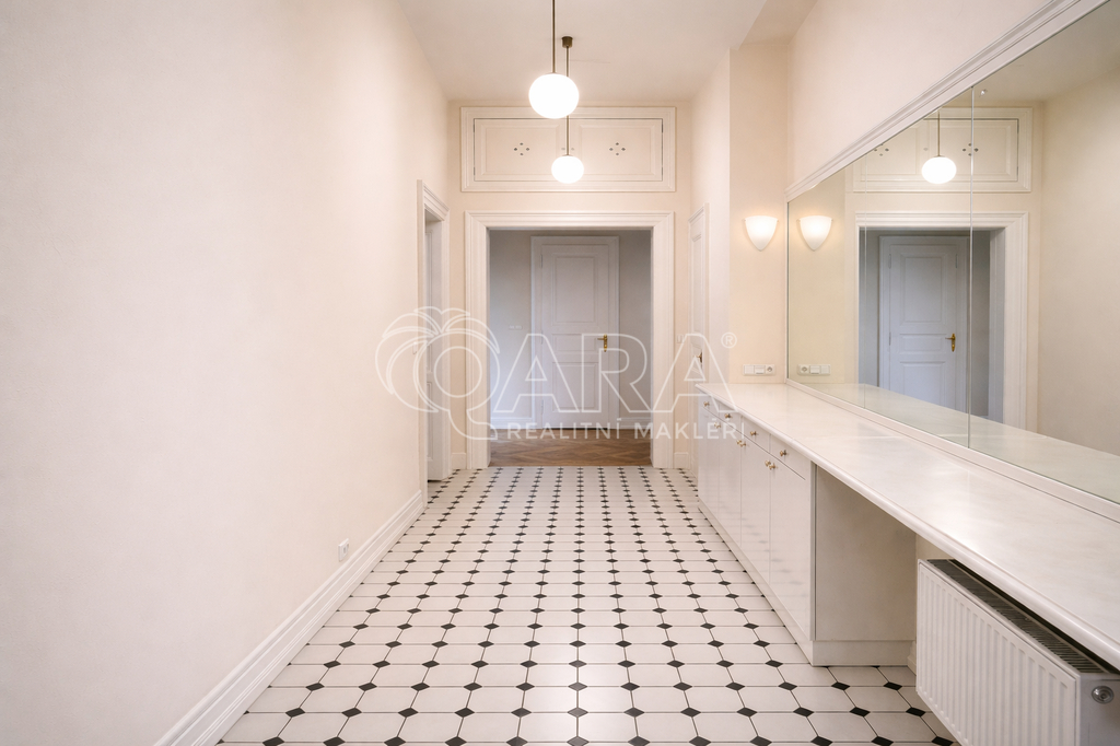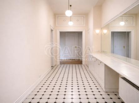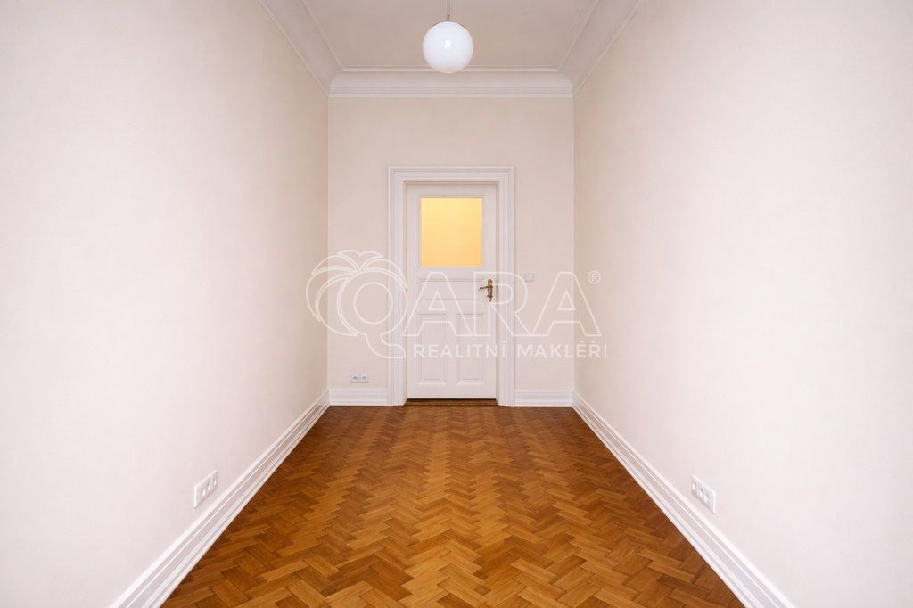 Nabízíme k pronájmu výjimečný, nezařízený byt o dispozici 4+1 a celkové ploše 151 m², se dvěma balkony, situovaný v reprezentativním historickém činžovním domě s recepcí, přímo v prestižní Pařížské ulici. Dům se nachází na jedné z nejluxusnějších adres v Praze, jen pár kroků od Staroměstského náměstí. Byt prošel kompletní a citlivou rekonstrukcí v roce 2023, při které byl kladen důraz na zachování původních architektonických prvků a historického charakteru interiéru. Nabízí tak exkluzivní bydlení s jedinečnou atmosférou. Velmi světlý byt je umístěn ve 3. nadzemním podlaží domu s moderním výtahem. Dispozice bytu zahrnuje prostornou vstupní halu, reprezentativní obývací pokoj, tři samostatné pokoje, komoru, koupelnu s vanou, toaletou a bidetem a samostatnou toaletu. Oddělená kuchyně je vybavena novou moderní kuchyňskou linkou se všemi spotřebiči (sporák, trouba, lednice s mrazákem, myčka, pračka). Interiér zaujme vysokými stropy, v hlavním pokoji se nachází originální historická stropní malba, v rohovém pokoji pak pozlacený štukový strop. Podlahy jsou pokryty dřevěnými parketami a ve všech místnostech je instalována klimatizace. Stylové bydlení v samotném srdci Prahy nabízí neopakovatelnou atmosféru historického centra a jedné z nejluxusnějších ulic Evropy. Kompletní občanská vybavenost v bezprostředním okolí – vyhlášené restaurace, kavárny, butiky i kulturní instituce. K nastěhování od 1. 7. 2026. Platby: Nájemné: 87 000 Kč V případě zájmu mě neváhejte kontaktovat.