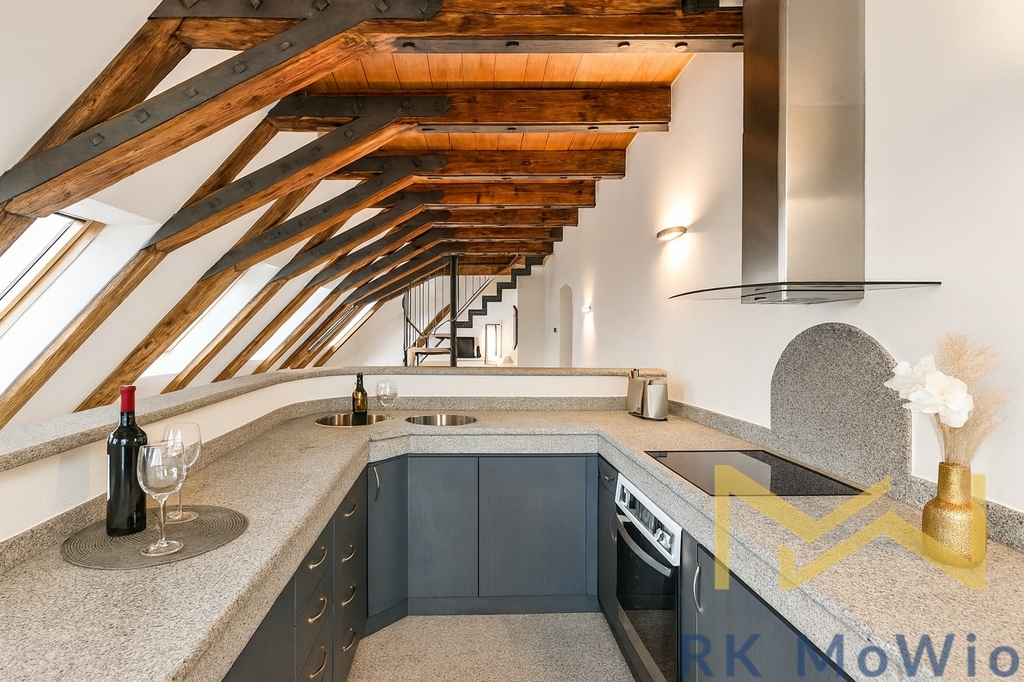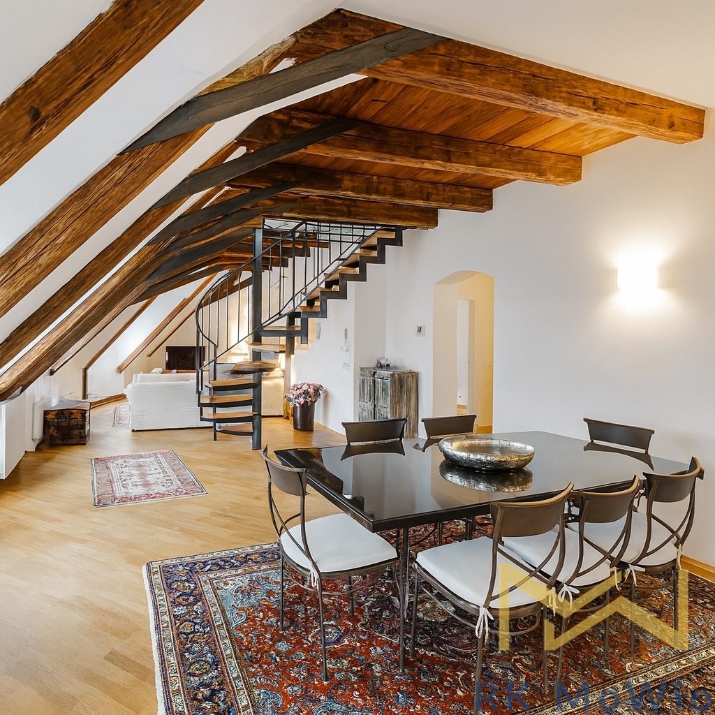 K pronájmu nabízíme zařízený, podkrovní, mezonetový byt č. V5-P, o dispozici 4+kk a podlahové ploše 221 m2, s unikátními dřevěnými trámy, situovaný ve 3. patře (4. nadzemní podlaží) zrekonstruované historické budovy bez výtahu v ulici Vlašská na Praze 1 - Malá Strana. Půdorys spodního patra bytové jednotky nabízí vstupní chodbu, vzdušný obývací pokoj s jídelní částí, kuchyňský kout, 2 ložnice, 1 koupelnu (s vanou, umyvadlem, bidetem a toaletou) a 2 komory. Z obývacího pokoje vede schodiště do horního patra a naleznete zde hlavní ložnici s privátní koupelnou (s vanou, umyvadlem, bidetem a toaletou). Vybavení bytu: kuchyňská linka včetně sklokeramické varné desky, digestoře, myčky, elektrické trouby; vestavěné skříně, přípojka pro pračku a sušičku, příprava pro vysokorychlostní internet, dřevěné podlahy a dlažba. Nemovitost se nachází v úchvatné historické lokalitě Malé Strany s veškerou občanskou vybaveností v blízké vzdálenosti - restaurace (St. Martin, Coda restaurant, Restaurant U Tří zlatých hvězd), kavárny (Café Clementina, Kafe a hrnky, Kaférna), supermarkety (Tesco) a lokální obchody, lékárny a poliklinika, pošta, úřady, bankomaty a další. Skvělá dopravní dostupnost: zastávka tramvaje - Malostranské náměstí, stanice metra A - Malostranská. K odpočinku v zeleni lze navštívit rozlehlé Petřínské sady či Kampu. Snadná dostupnost do obchodního centra Palladium či OC Nový Smíchov. Nájemné ve výši 75.000,- Kč/měsíc plus poplatky 5.400,- Kč/měsíc (domovní služby a služby za byt), převod elektřiny a plynu na nájemce. POŽADOVANÁ JISTOTA (KAUCE) ČINÍ 3 MĚSÍČNÍ NÁJMY. Minimální délka pronájmu je 1 rok, spolubydlení a ubytování formou Airbnb nelze realizovat. Třída energetické náročnosti budovy je dle vyhlášky 78/2013 Sb. klasifikována G.