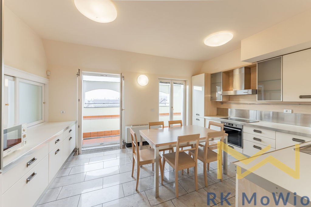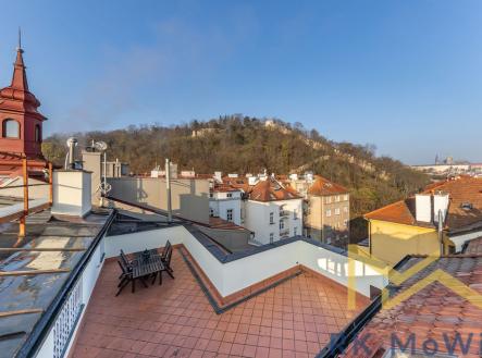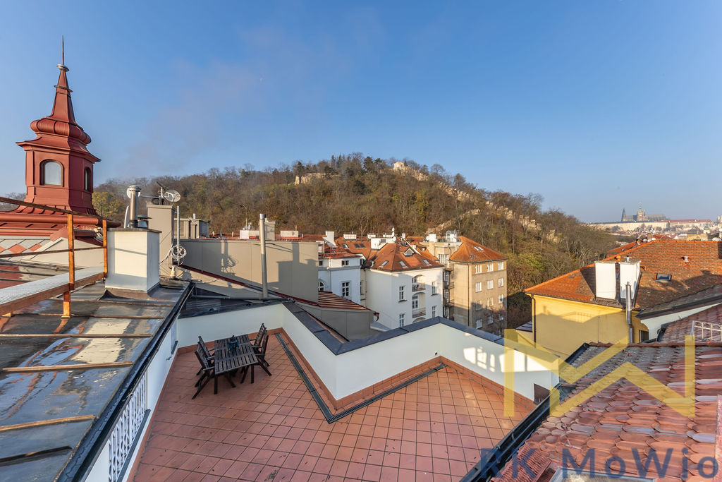Luxusní mezonetový podkrovní byt s balkónem a terasou s výhledem na město v pražském Újezdu