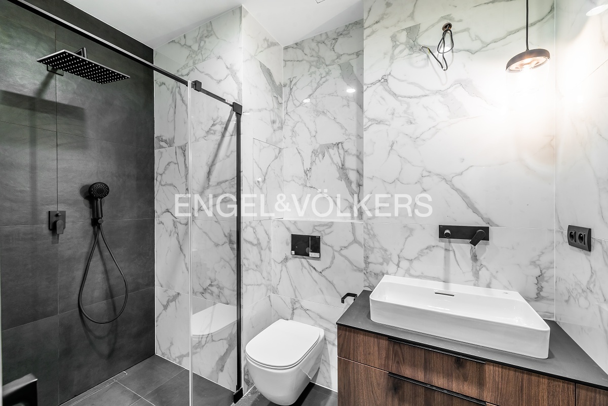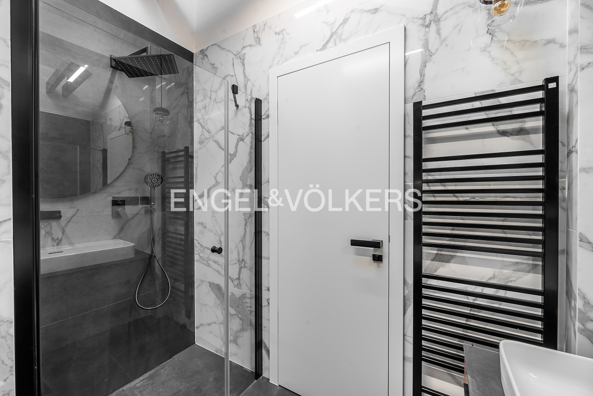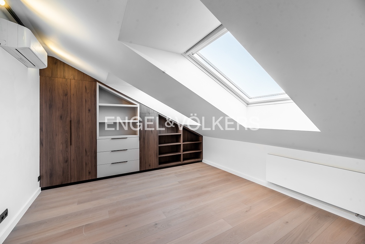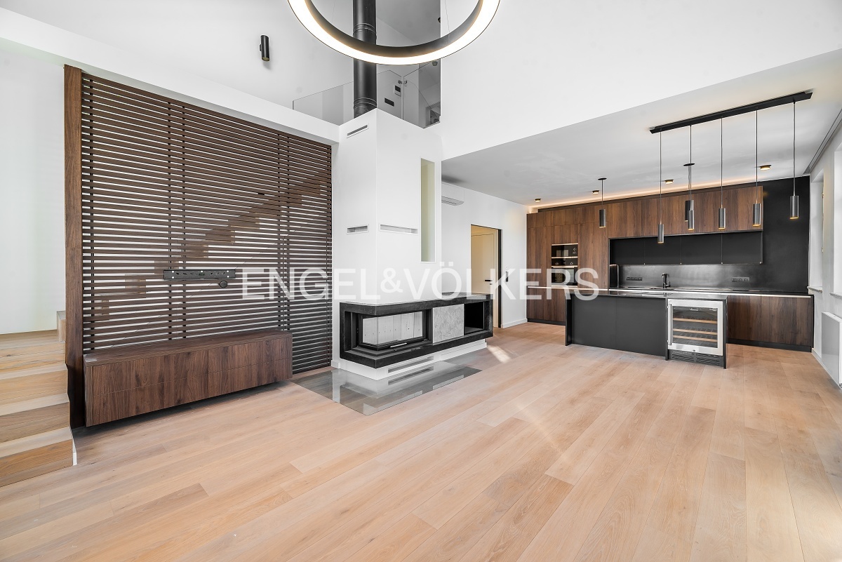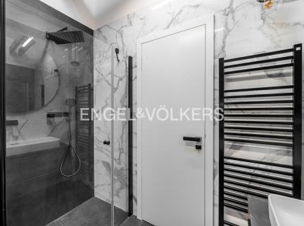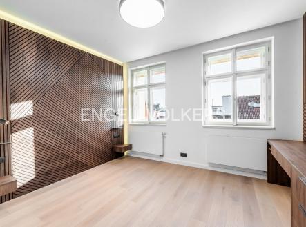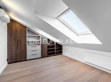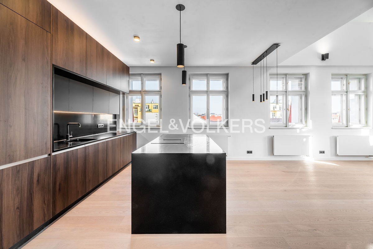 K pronájmu od 15.9.2025 je připravený exkluzivní klimatizovaný mezonetový byt 4+kk s terasou, který se nachází v posledním 5. - 6. nadzemním podlaží kompletně zrekonstruovaného domu s výtahem v blízkosti Petřína a OC Smíchov. Celý dům i byty jsou po nadstandardní rekonstrukci, při které se dbalo na zachování původních prvků a vytvoření komfortního, moderního bydlení. Moderní a vzdušná dispozice bytu, kdy se ve vstupním podlaží nachází prostorný obývací pokoj s krbem, plně vybavenou kuchyní Gemadecor, master bedroom s vlastní šatnou a koupelnou, technickou místností a toaletou pro hosty. Ve druhém privátním patře se nachází dvě samostatné ložnice s vestavěnými skříněmi, prostorná koupelna s vanou a sprchovým koutem, extra toaleta a terasa. Součástí pronájmu je pračka se sušičkou, prakticky umístěna v technické místnosti. K bytu náleží sklepní kóje cca 3 m2 a též společná kočárkárna/kolárna se sprchou. Poplatky činí 8 500 Kč a elektřina bude převedena na nájemce. Parkovací stání je možné za příplatek 4 000 Kč/měsíc.