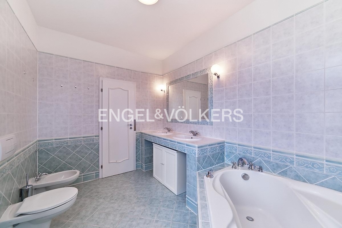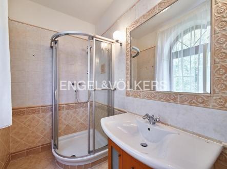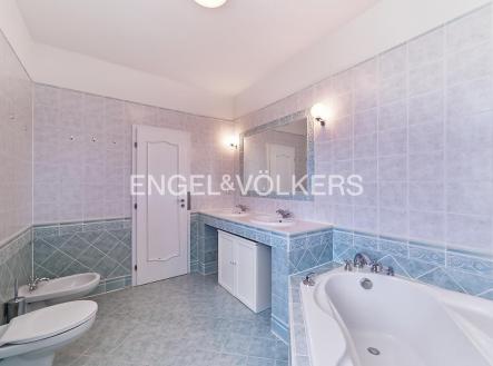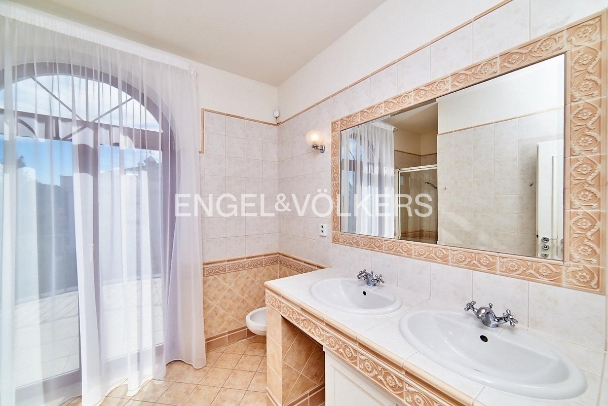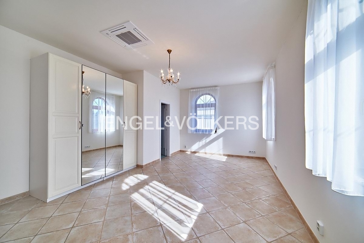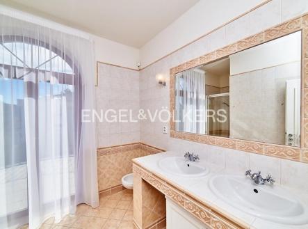 K dlouhodobému pronájmu je připravená reprezentativní vila s dispozicí 5+1 s obrovskou zahradou a venkovním vyhřívaným bazénem. Rozprostírá se na dvou obytných patrech. Vstupní hala je propojená s prostorným obývacím pokojem s krbem a kuchyňským koutem plně vybaveným spotřebiči. Z obývacího pokoje vstupujete na terasu a zahradu. Součástí spodního patra je také samostatná toaleta, prádelna s pračkou a sušičkou, spíž i šatna. V patře se nachází dvě prostorné ložnice se šatními skříněmi a en-suite koupelnami a další dvě ložnice. Na horní terasu vstupujete přes třetí koupelnu. Součástí horního patra je i další samostatná toaleta. Samozřejmostí je klimatizace. K nemovitosti náleží udržovaná zahrada s venkovním vyhřívaným bazénem a garáž pro dvě auta. Kauce je stanovena ve výši dvou měsíčních nájmů. Provize realitní kanceláři je jeden měsíční nájem + DPH.
