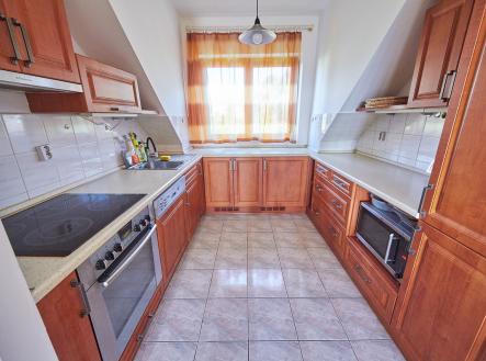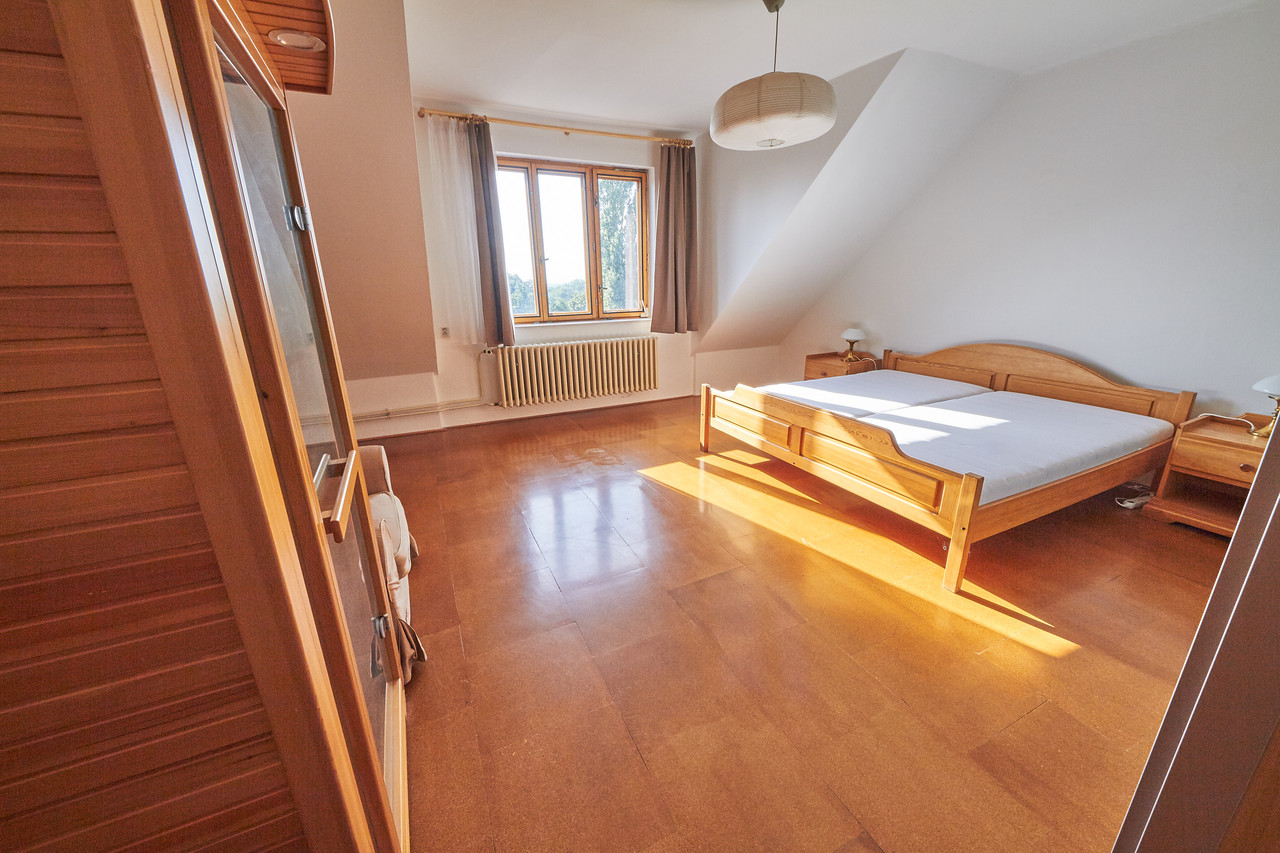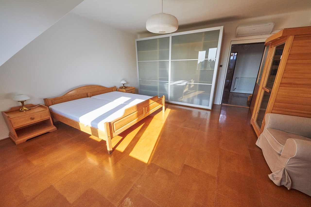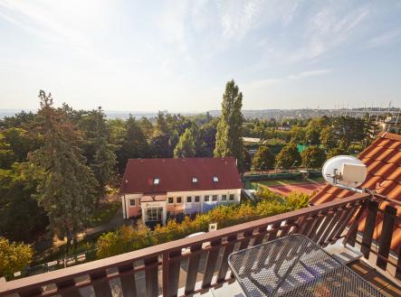 Prostorný mezonetový byt 3+kk s terasou a balkonem, v prestižní čtvrti Hanspaulka. Byt ve 3.patře bytového domu v nádherném prostředí pražské Hanspaulky. V dolním patře bytu se vpravo nalézá prostorná ložnice s dvoulůžkem, šatní skříní, saunou a klimatizací. Vpravo v chodbě vedle ložnice je prostorná komora, ve které je aktuálně umístěna sušička prádla AEG. Vlevo proti ložnici je samostatné WC a samostatná koupelna s vanou, sprchovým koutem, dvojumyvadlem a pračkou Samsung.Chodba v dolní části bytu ústí do obývací části bytu, v jejíž levé části je kuchyňský kout s plně vybavenou kuchyní s keramickou varnou deskou, digestoří, el. troubou, myčkou nádobí AEG a mikrovlnkou. Na kuchyňský kout navazuje malá jídelna s jídelním stolem a dále obývací pokoj 25m2 s klimatizací a vstupem na malý balkon.Z chodby v dolní části bytu je vstup schodištěm do patra, kde je předsíňka cca 11m2 se vstupem na terasu 9m2 s nádherným panoramatickým výhledem na Prahu. Z předsíňky vpravo je dále vstup do ložnice cca 17m2 s dvěma lůžky. Dobré dopravní spojení bus - metro A Bořislavka. Volné ihned.