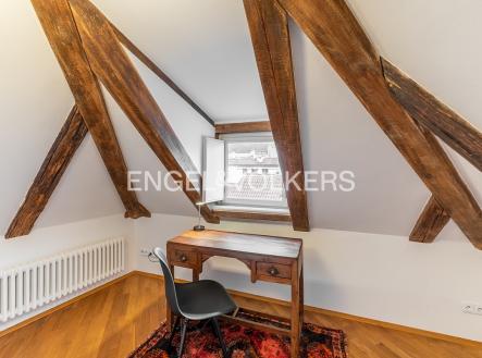 Skvělá adresa k bydlení v sousedství německé a americké ambasády. Historický činžovní dům z 16. století po kompletní rekonstrukci. Rekonstrukce zachovala veškeré původní architektonické a dekorační prvky. Podkrovní mezonetový a zařízený byt 4+kk se třemi ložnicemi, dvěma koupelnami a s nádherným výhledem na Pražský hrad a Petřín. V prvním patře se nachází prostorný světlý obývací pokoj spojený s jídelním prostorem a plně vybavenou kuchyní (lednice, mrazák, trouba, varná deska, myčka), dvě ložnice a koupelna. Ve druhém patře je otevřený prostor - ložnice s částečně oddělenou pracovnou a druhá koupelna. Pračka a sušička součástí pronájmu. Podlahy jsou dřevěné. K nastěhování ihned.