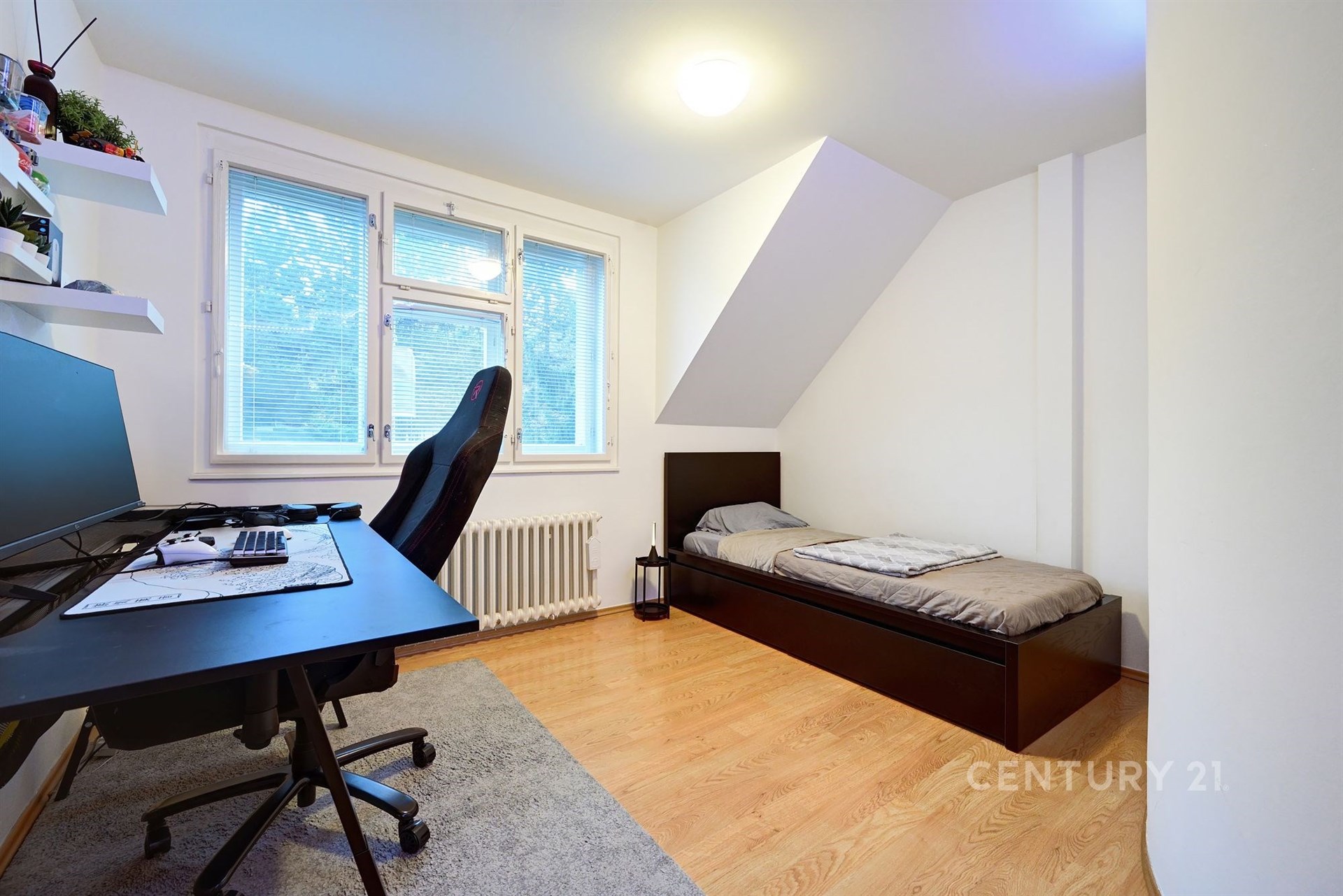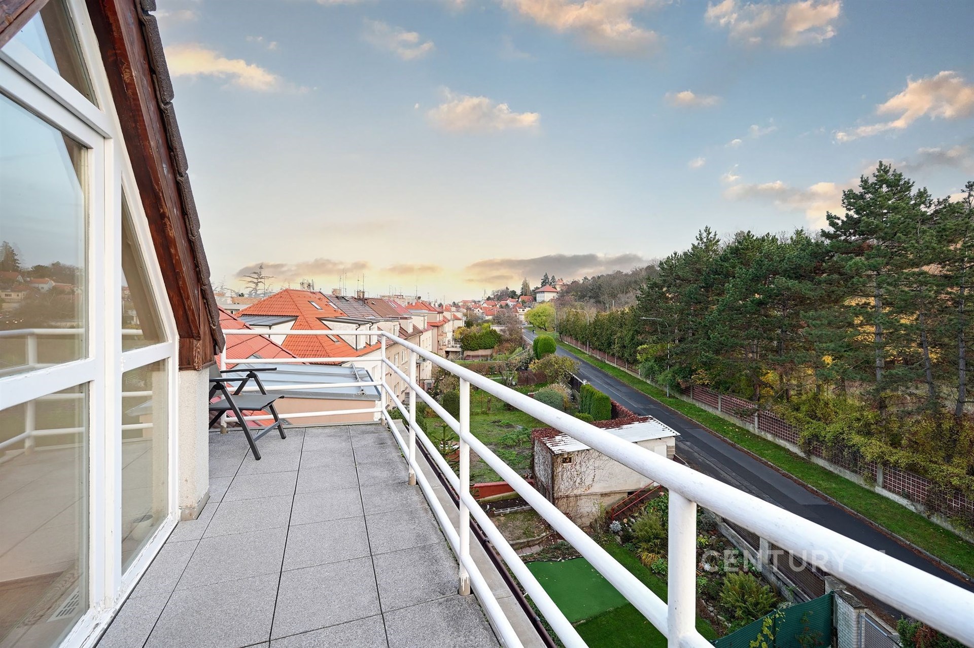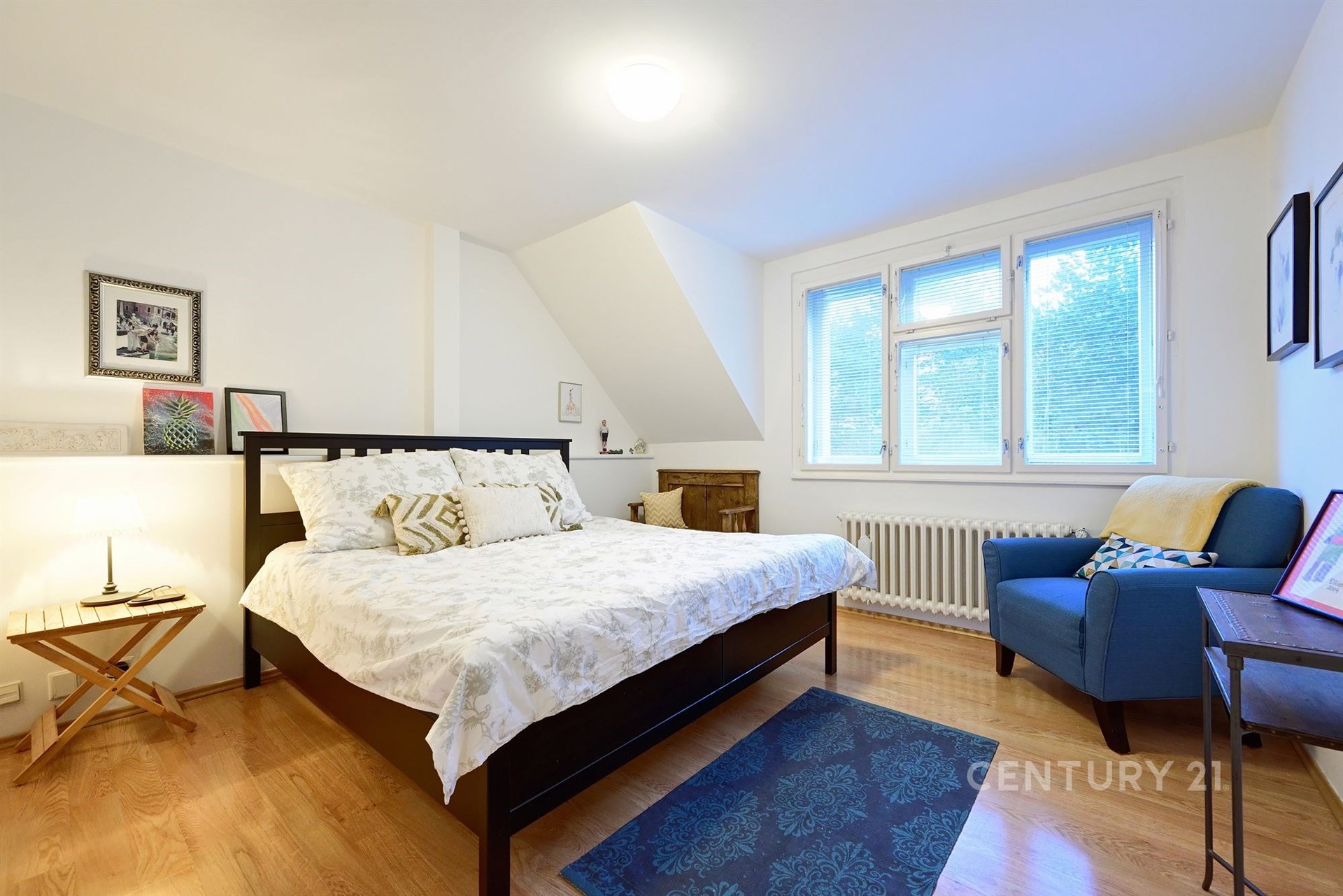 Prostorný mezonetový byt o třech podlažích (2. – 4.NP) s balkonem a terasou, vzniklý spojením dvou původně samostatných bytových jednotek a půdních prostor v bytovém domě. Celková obytná plocha je 171 m2. K bytu patří garáž a sklad v úrovni ulice. Spolu s menší bytovou jednotkou v domě je ve společném užívání zahrada. V 2. nadzemním podlaží se nachází vstupní chodba s vestavěnými skříněmi, ze kterých je vstup do koupelny se sprchou a WC, do kuchyně se spíží a obývacího pokoje s jídelnou. Obývací pokoj má velký balkon orientovaný do zahrady. Do 3. nadzemního podlaží se jde po dřevěném schodišti. Z chodby je přístup do 3 samostatných pokojů, jeden z nich má vlastní šatnu. Dále do prostorné koupelny s rohovou vanou a WC. Naproti schodišti je důmyslná knihovna s točitým schodištěm, které vede do podkroví. V podkroví je jedna prostorná místnost s kuchyní, která má vlastní terasu orientovanou do zahrady (na jih) a technická místnost s kotlem. Byt a společné prostory v domě prošly zásadní rekonstrukcí v roce 1998 včetně zateplení celého domu, v roce 2008 byla provedena sanace zemní vlhkosti v 1.PP, v roce 2011 pak byla provedena nová fasáda a položena nová dlažba na balkoně a terase. Ústřední vytápění zajišťuje samostatný plynový turbokotel Junkers, zásobník TUV byl vyměněn v roce 2016. Okna jsou dřevěná špaletová, kvalitě provedené repliky včetně kování dle původního provedení. Interiérové dveře částečně repasované, částečně repliky dle původního provedení. Byt je ve velmi dobrém stavu, vykazuje však opotřebení odpovídající době užívání. Atraktivní lokalita v Praze 6 mezi ulicemi Střešovická a Na Petřinách, výborně dostupná MHD (stanice tramvaje pěšky 5 minut, metro Bořislavka 10 minut, do centra 30 minut). Výhled do zeleně, hlavní komunikace je odcloněna vzrostlými stromy. Chládkovo zahradnictví (s dobrou restaurací) jen 200 m, další restaurace v okolí na Ořechovce a ve Střešovicích. Skvělé školy, školky, nedaleko koupaliště Petynka, obchody i služby.
