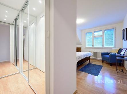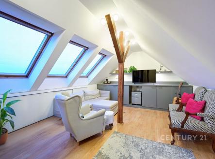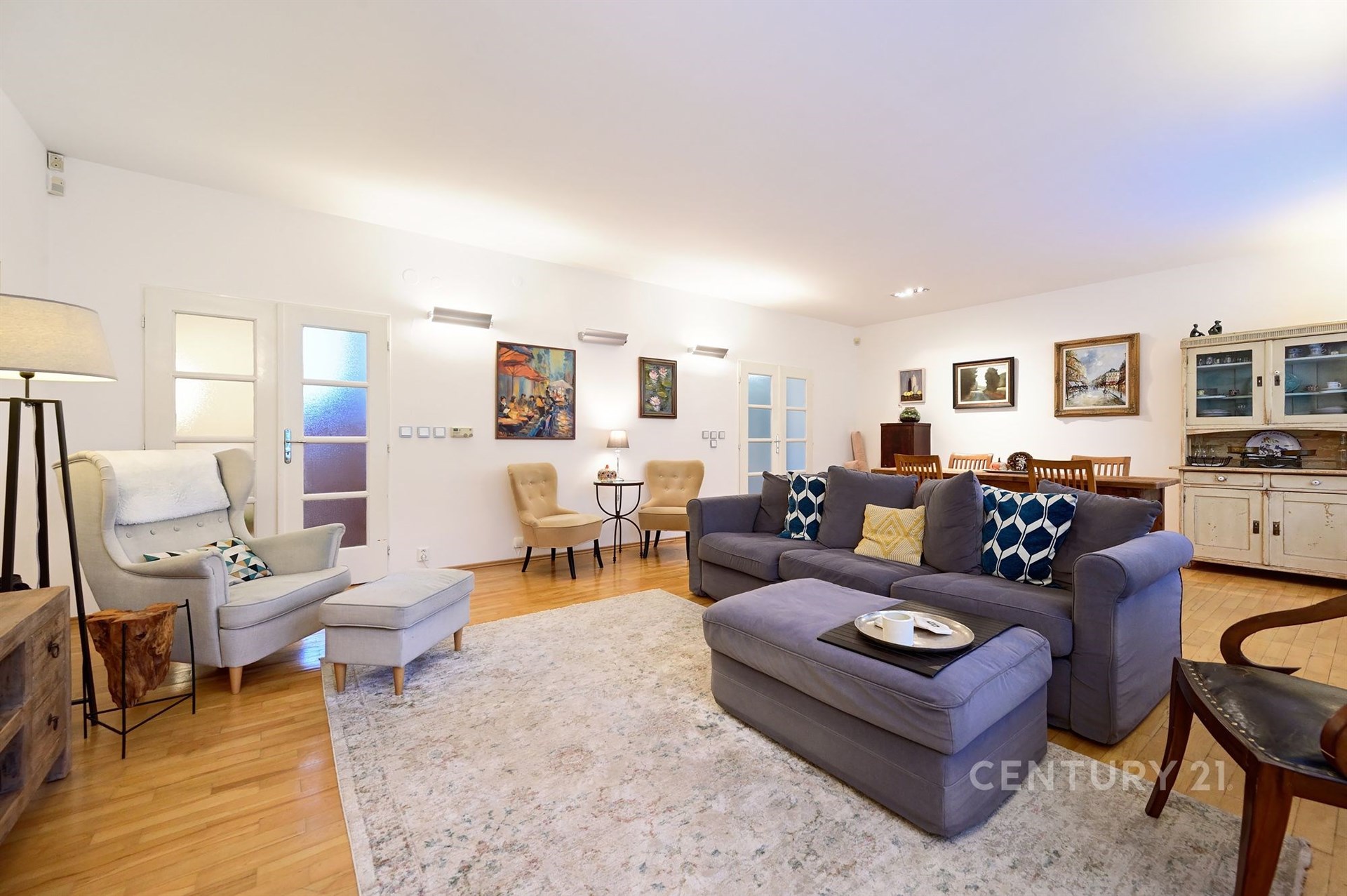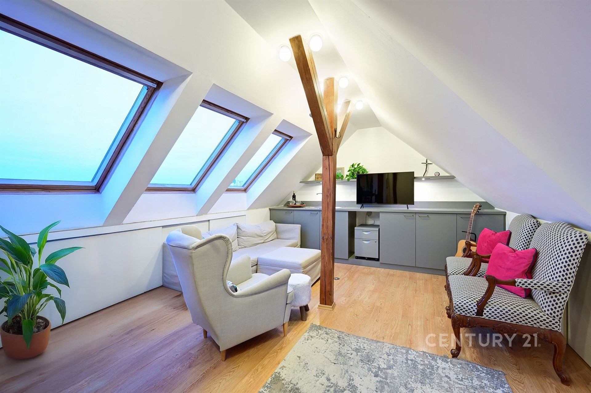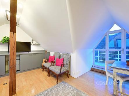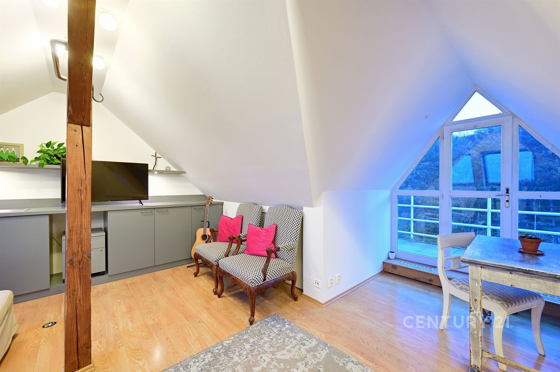 Prostorný mezonetový byt o třech podlažích (2. – 4.NP) s balkonem a terasou, vzniklý spojením dvou původně samostatných bytových jednotek a půdních prostor v bytovém domě. Celková obytná plocha je 171 m2. K bytu patří garáž a sklad v úrovni ulice. Spolu s menší bytovou jednotkou v domě je ve společném užívání zahrada. V 2. nadzemním podlaží se nachází vstupní chodba s vestavěnými skříněmi, ze kterých je vstup do koupelny se sprchou a WC, do kuchyně se spíží a obývacího pokoje s jídelnou. Obývací pokoj má velký balkon orientovaný do zahrady. Do 3. nadzemního podlaží se jde po dřevěném schodišti. Z chodby je přístup do 3 samostatných pokojů, jeden z nich má vlastní šatnu. Dále do prostorné koupelny s rohovou vanou a WC. Naproti schodišti je důmyslná knihovna s točitým schodištěm, které vede do podkroví. V podkroví je jedna prostorná místnost s kuchyní, která má vlastní terasu orientovanou do zahrady (na jih) a technická místnost s kotlem. Byt a společné prostory v domě prošly zásadní rekonstrukcí v roce 1998 včetně zateplení celého domu, v roce 2008 byla provedena sanace zemní vlhkosti v 1.PP, v roce 2011 pak byla provedena nová fasáda a položena nová dlažba na balkoně a terase. Ústřední vytápění zajišťuje samostatný plynový turbokotel Junkers, zásobník TUV byl vyměněn v roce 2016. Okna jsou dřevěná špaletová, kvalitě provedené repliky včetně kování dle původního provedení. Interiérové dveře částečně repasované, částečně repliky dle původního provedení. Byt je ve velmi dobrém stavu, vykazuje však opotřebení odpovídající době užívání. Atraktivní lokalita v Praze 6 mezi ulicemi Střešovická a Na Petřinách, výborně dostupná MHD (stanice tramvaje pěšky 5 minut, metro Bořislavka 10 minut, do centra 30 minut). Výhled do zeleně, hlavní komunikace je odcloněna vzrostlými stromy. Chládkovo zahradnictví (s dobrou restaurací) jen 200 m, další restaurace v okolí na Ořechovce a ve Střešovicích. Skvělé školy, školky, nedaleko koupaliště Petynka, obchody i služby.