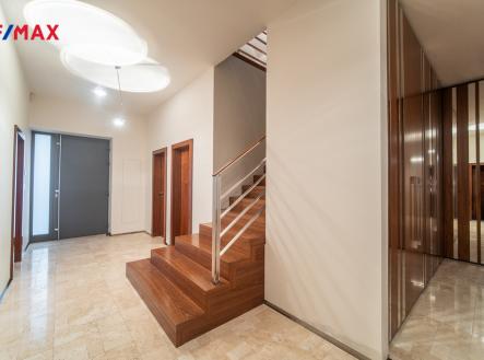 Nadstandardní rodinný dům pro náročné zájemce hledající kvalitní a reprezentativní bydlení. Atraktivní lokalita sousedící s přírodní rezervací Prokopské údolí, Praha 5 Hlubočepy. To jsou základní parametry nemovitosti, která může být vaším novým domovem. Třípodlažní rodinný dům kolaudovaný v roce 2012 nabízí užitnou plochu 536 m². Interiér poskytuje dostatek soukromí a osobního prostoru všem členům rodiny. K dispozici jsou 4 ložnice, 2 pracovny, 3 koupelny, technické a servisní zázemí, klimatizovaný sklad potravin a v neposlední řadě vzdušný obývací pokoj s kuchyňským a jídelním koutem. Obývací pokoj je společenským centrem každého rodinného domu a proto mu byl věnován patřičný prostor. Na téměř 97 m² podlahové plochy se pohodlně vejde prostorné posezení pro rodinu i hosty. Bez kompromisů si tak můžete užívat poslech hudby z intergovaného domácího audiosystému BOSE nebo sledovat oblíbený film na vestavěném projekčním plátně. Kuchyně je vybavena prémiovými spotřebiči francouzské značky De Dietrich včetně indukčního woku a grilovací desky tepan. Také další detaily Vás nenechají na pochybách, že majitelé při stavbě domu a při jeho zařizovaní nešetřili na kvalitě. S koupí domu tak získáte nadčasovou nemovitost, která vám bude dlouhá léta spolehlivě sloužit. Vytápění a ohřev vody jsou řešeny tepelným čerpadlem v kombinaci se solárními kolektory. V domě je rozvedeno podlahové topení mimo ložnic, ve kterých jsou instalována designová topná tělesa. Kvalitní okna z vakuových trojskel s vnitřní fólií poskytují dokonalou tepelnou i aktustickou pohodu v domě. Stínění je řešeno venkovními elektrickými roletami. Samozřejmostí je elektronický zabezpečovací systém s venkovními kamerami. Případné cennosti můžete uložit do trezorové místnosti, která má necelé 4 m². Pohodlné parkování Vám poskytne garáž projektovaná pro 3 vozidla, která má výměru 90 m². Dům disponuje také dvěma pochozími přírodními terasami o výměře necelých 115 m² ve 3. nadzemním podlaží. Terasy nejsou zahrnuty do užitné plochy domu. Dům je situován na mírně svažitém pozemku s přístupem z jižní strany. Směrem do svahu se na pozemku nachází nedokončená hrubá stavba vnitřního bazénu se saunou a zimní zahradou. Pokud Vás tato nabídka zaujala, rádi Vám poskytneme další podrobné informace. Těším se na viděnou na prohlídce!
