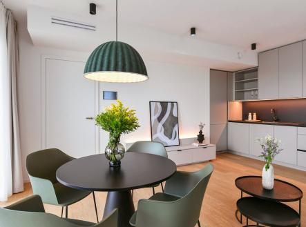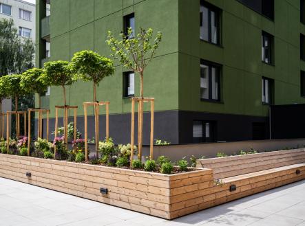 High-End Apartment for Sale: Sun-Drenched 1-Bedroom with Expansive Terrace This airy, south-east facing 1-bedroom (2+kk) apartment offers a total interior area of over 65 m², complemented by a stunning, wraparound terrace exceeding 62 m². Located on the 2nd floor of a modern residential building, the living areas provide peaceful views of the courtyard and a quiet street. Key Features: - A spacious open-plan living room featuring an L-shaped kitchenette. This central space offers direct access to both sections of the terrace. - Both the living area and the bedroom feature direct access to the expansive outdoor space, perfect for relaxation or entertaining. - Designed with practicality in mind, the unit includes extensive storage solutions in both the segmented entrance hall and the main living quarters. - The main bathroom is equipped with a shower, sink, and washing machine hookups. For added convenience, there is an additional separate guest toilet with a small washbasin. THE HIGHLIGHT: An exceptionally airy floor plan featuring two generous terrace areas that effectively double your living space. WHO IS IT FOR? An ideal choice for young families, professional couples, or discerning "singles and mingles" seeking high-standard urban living.